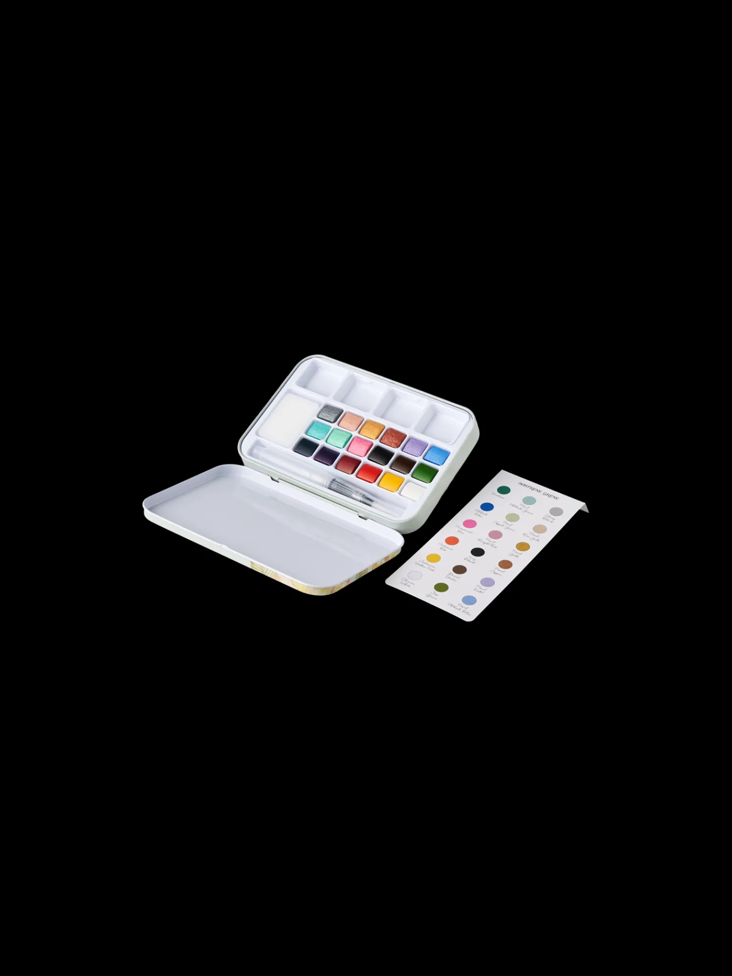 Das Aquarell-Set der Schwestern besteht aus 9 schimmernden Farben und 9 einfarbigen Farben. Es wird mit einem Pinsel für Aquarellfarben geliefert.