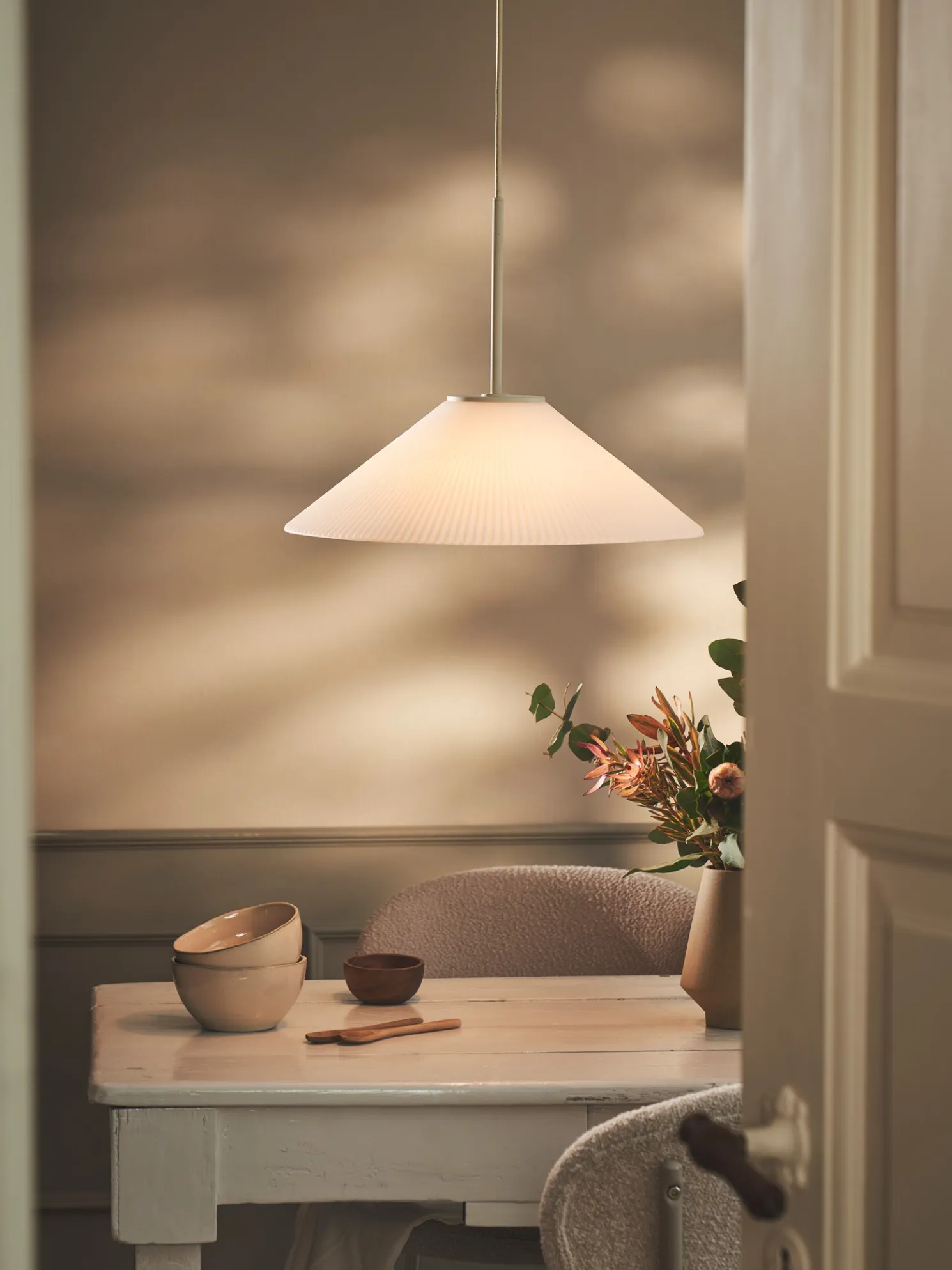 Wenn Sie auf der Suche nach einer Deckenleuchte sind, um Ihren Esstisch zu beleuchten, dann ist diese Lampe eine wunderbare Option. Der Lampenschirm aus Glas ist mit weichen, plissierten Details versehen. Die Schwestern weisen darauf hin, dass er eine Standard-E27-Fassung hat. Die Glühbirne ist jedoch nicht im Lieferumfang enthalten.