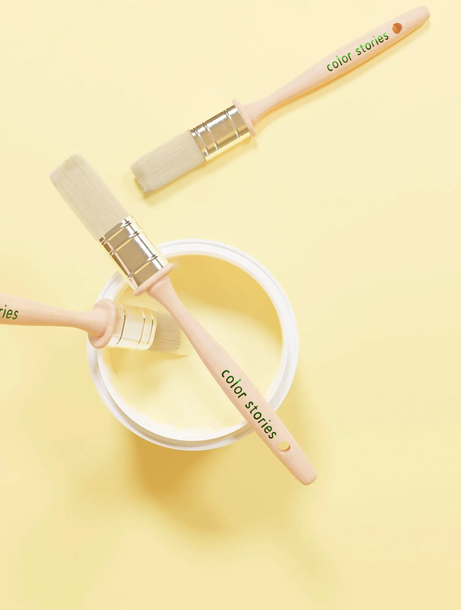 Die Schwestern weisen freundlich darauf hin, dass dieses Produkt nur online erhältlich ist.Die Farbe von Color Stories in der Farbe Summer ist eine Acrylfarbe. Es wird in einem Eimer von 450 ml geliefert und deckt 3-4 m2 ab. Die Farbe kann auf einer Vielzahl von Oberflächen wie Wänden, Möbeln, Fensterrahmen und vielem mehr verwendet werden. Das Auftragen von zwei dünnen Schichten sorgt für eine ideale Deckkraft. Die Farbe wird in Dänemark hergestellt.„Farbe in Ihr Zuhause zu bringen, ist eine wunderbare Art, Ihrer Einrichtung eine persönliche Note zu verleihen“, freut sich Anna. Gerade hat sie zwei der Esszimmerstühle in den Lieblingsfarben der Schwestern gestrichen und schaut nun entschlossen zur Wand in ihrem Bastelzimmer.„Aber denk dran, alle Oberflächen abzudecken, damit sie nicht so viele Farbspritzer wie dein Gesicht bekommen, liebe Anna“, lacht Clara. „Stimmt“, sagt ihre Schwester. „Und wir müssen auch daran denken, Malerkrepp entlang der Ecken zu befestigen, um saubere Kanten zu haben.“Die Schwestern empfehlen, die Farbe zwischen den Schichten 6-12 Stunden trocknen zu lassen. Sie weisen darauf hin, dass die Farbe nicht mit Malerzubehör geliefert wird und dass die Farbe je nach Bildschirm ein wenig abweichen kann.Eine Anleitung zum Streichen finden Sie auf Anna und Claras Color Stories-Markenseite.