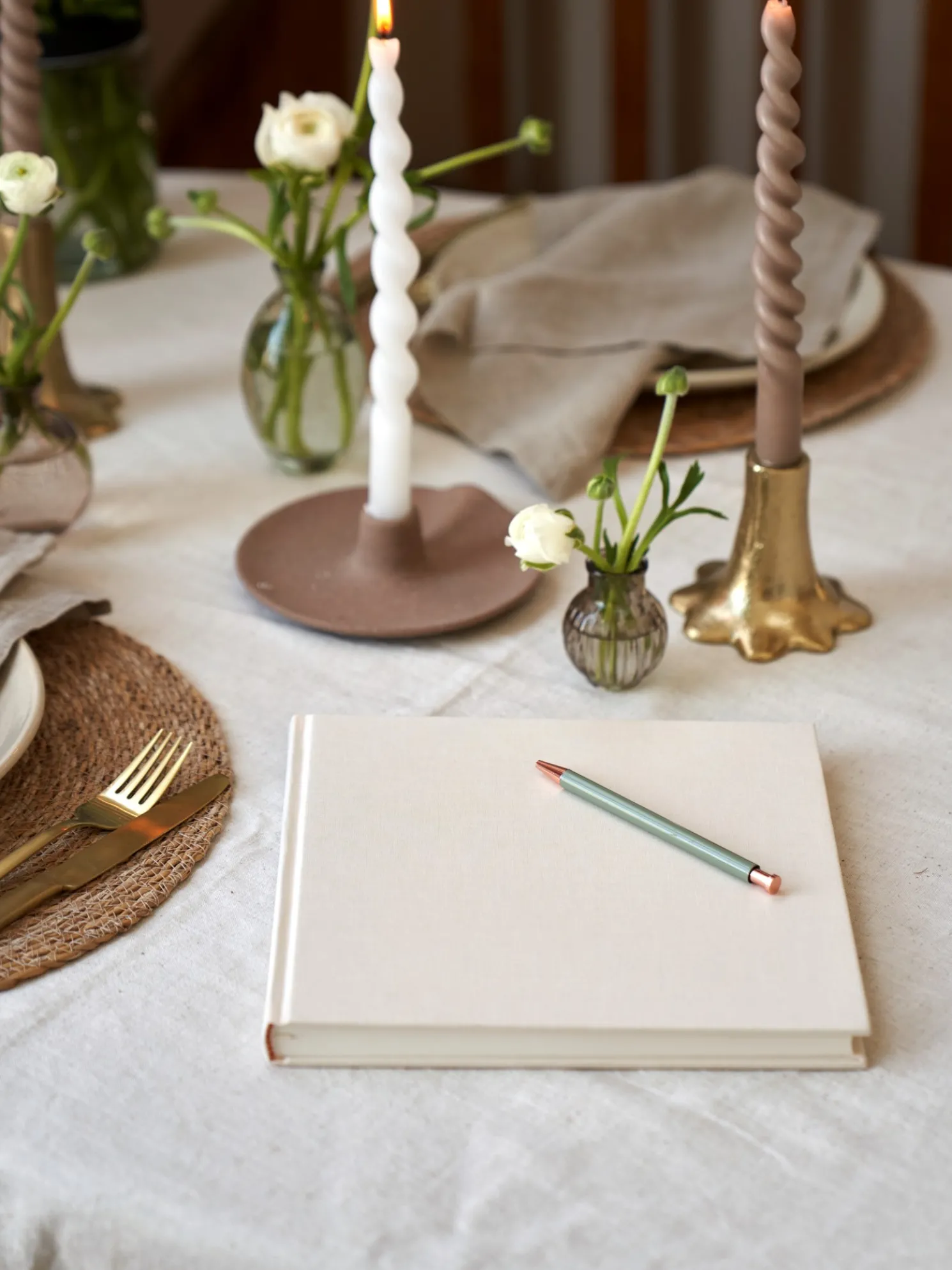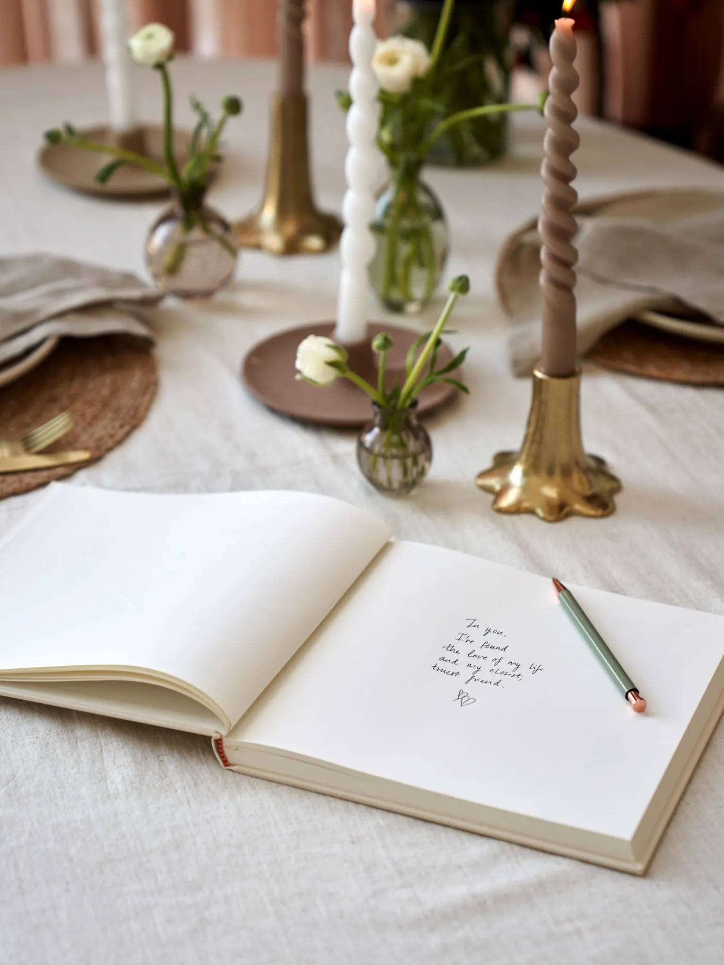 Das Gästebuch von Semikolon hat Seiten aus weißem schwedischem Munken-Papier und ist mit feinem Buchleinen gebunden. Es misst 25 x 23 cm und hat 180 Seiten à 115 g/m².