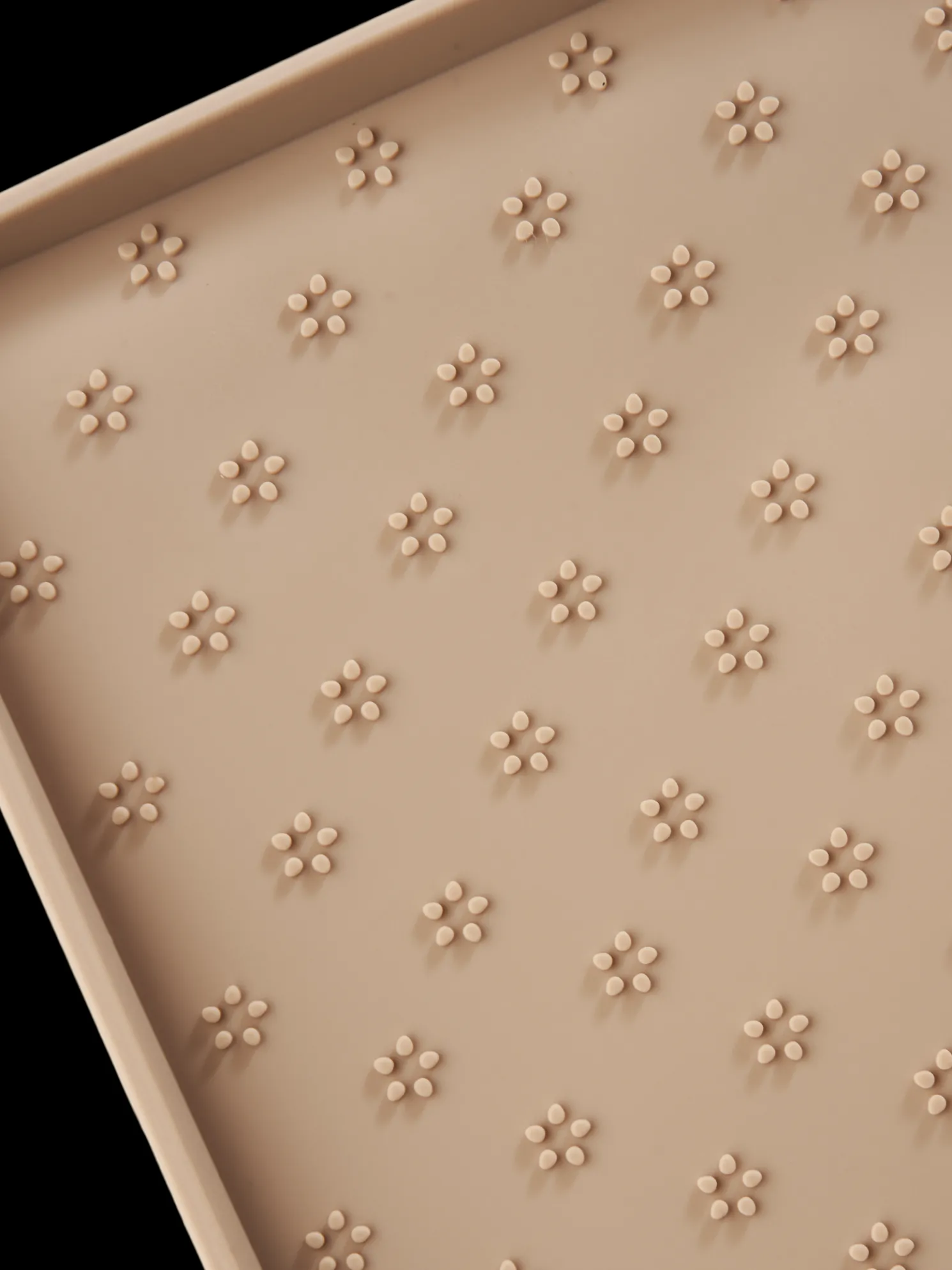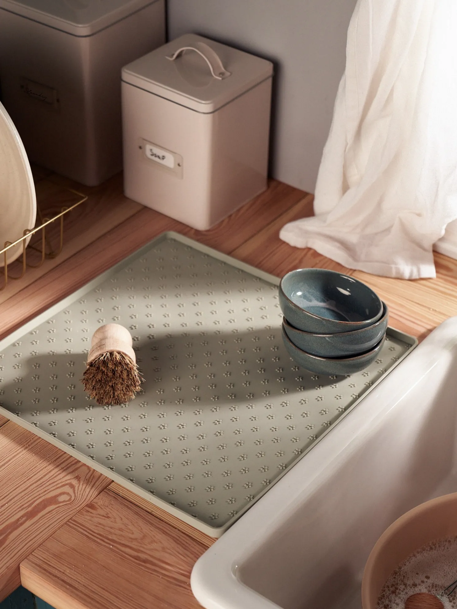 Mit der Geschirrtrockenmatte der Schwestern wird der Abwasch zum Kinderspiel. Sie besteht aus Silikon und misst 34 x 34 cm.