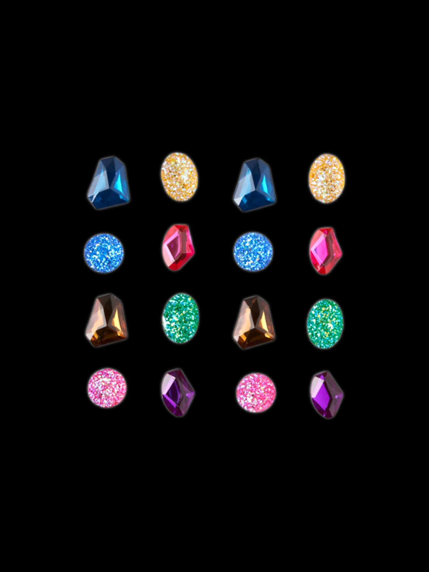 Die Glitzersteinaufkleber der Schwestern bestehen aus Polyresin und PET. Eine Packung enthält 16 Steine.