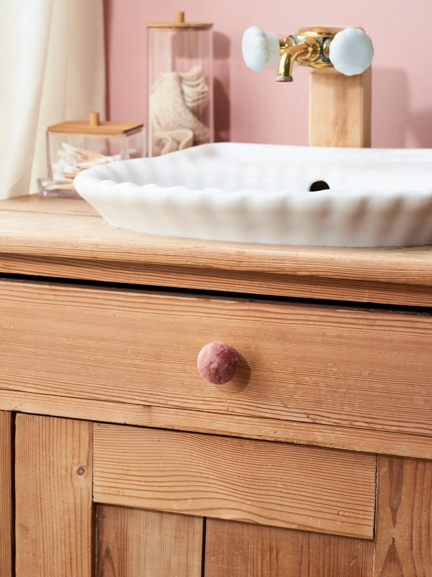 Der Samtknauf der Schwestern ist eine weiche und elegante Ergänzung für jedes Zuhause. Sie können ihn sowohl als Möbelknauf als auch als ungewöhnlichen Haken zur Aufbewahrung oder Dekoration verwenden.
