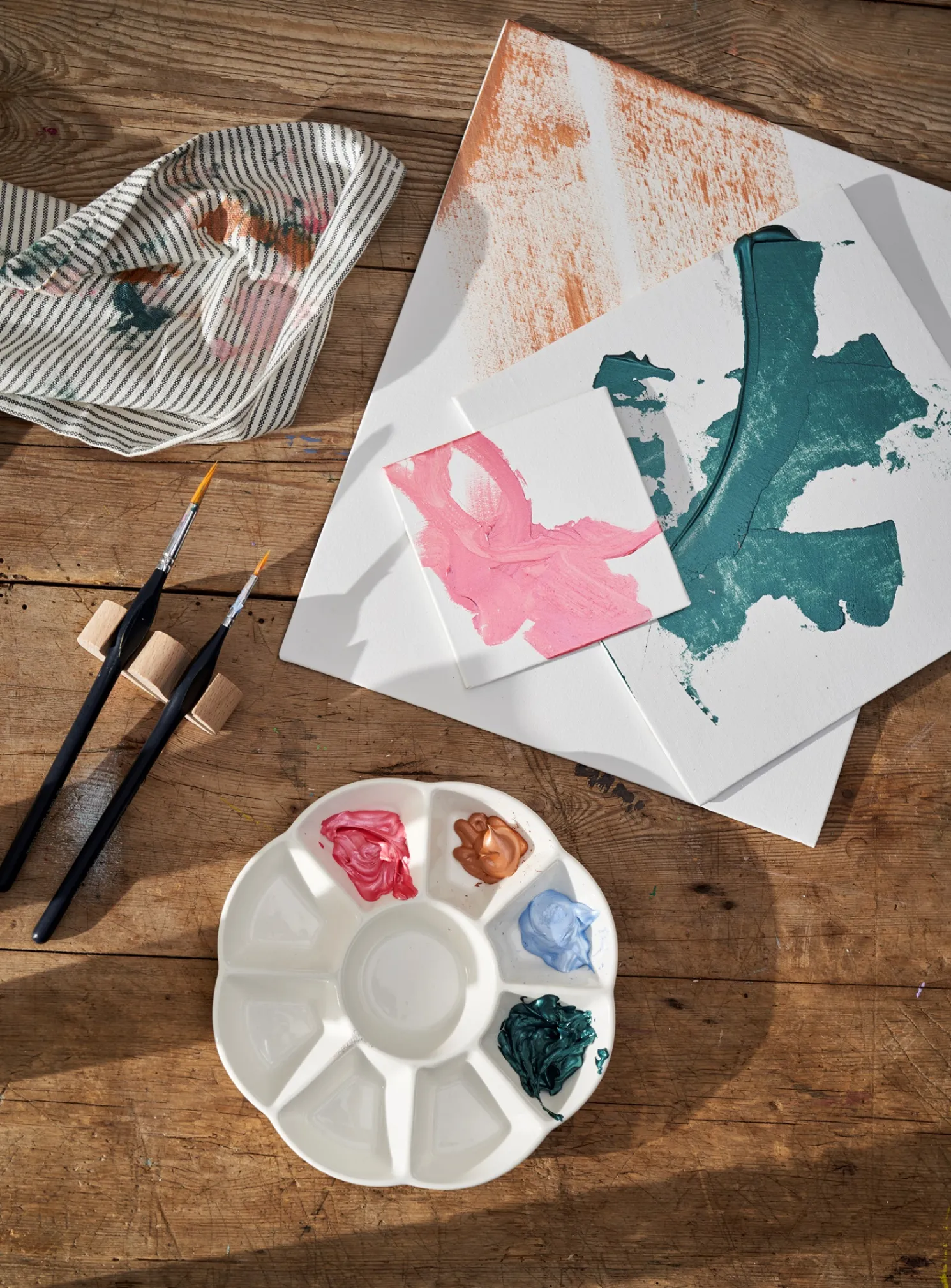 Die Leinwand der Schwestern ist perfekt für Aquarellfarben und misst 18 x 24 cm. Sie besteht aus Schaumstoff, Baumwolle und 100 % FSC®-zertifiziertem Papier.
