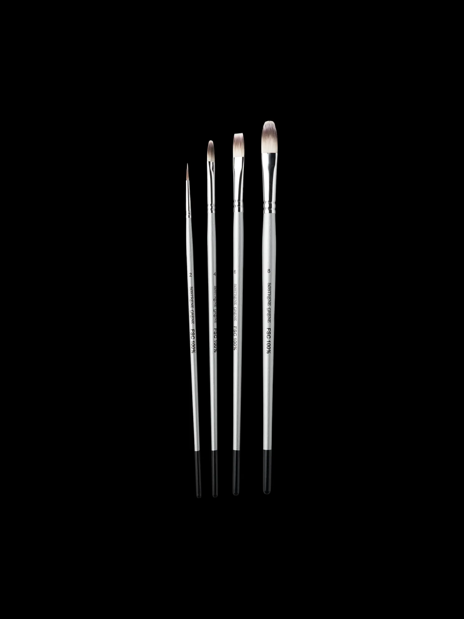Das Pinselset der Schwestern besteht aus vier Pinseln aus FSC®-zertifiziertem Birkenholz sowie Nylonborsten.