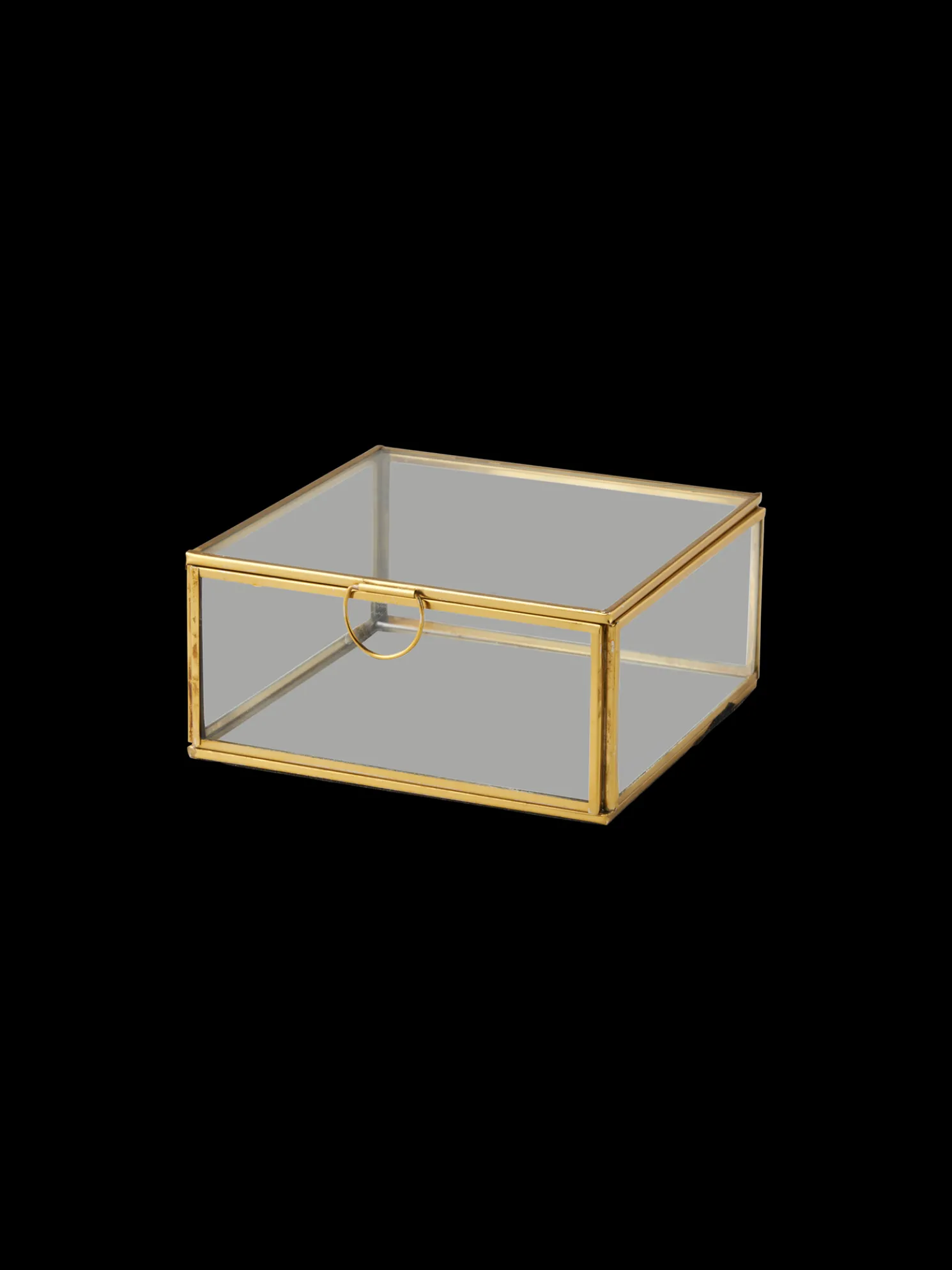 Die Schmuckschatulle der Schwestern ist aus Glas und Messing gefertigt und misst 14,5 x 14,5 x 6,7 cm.