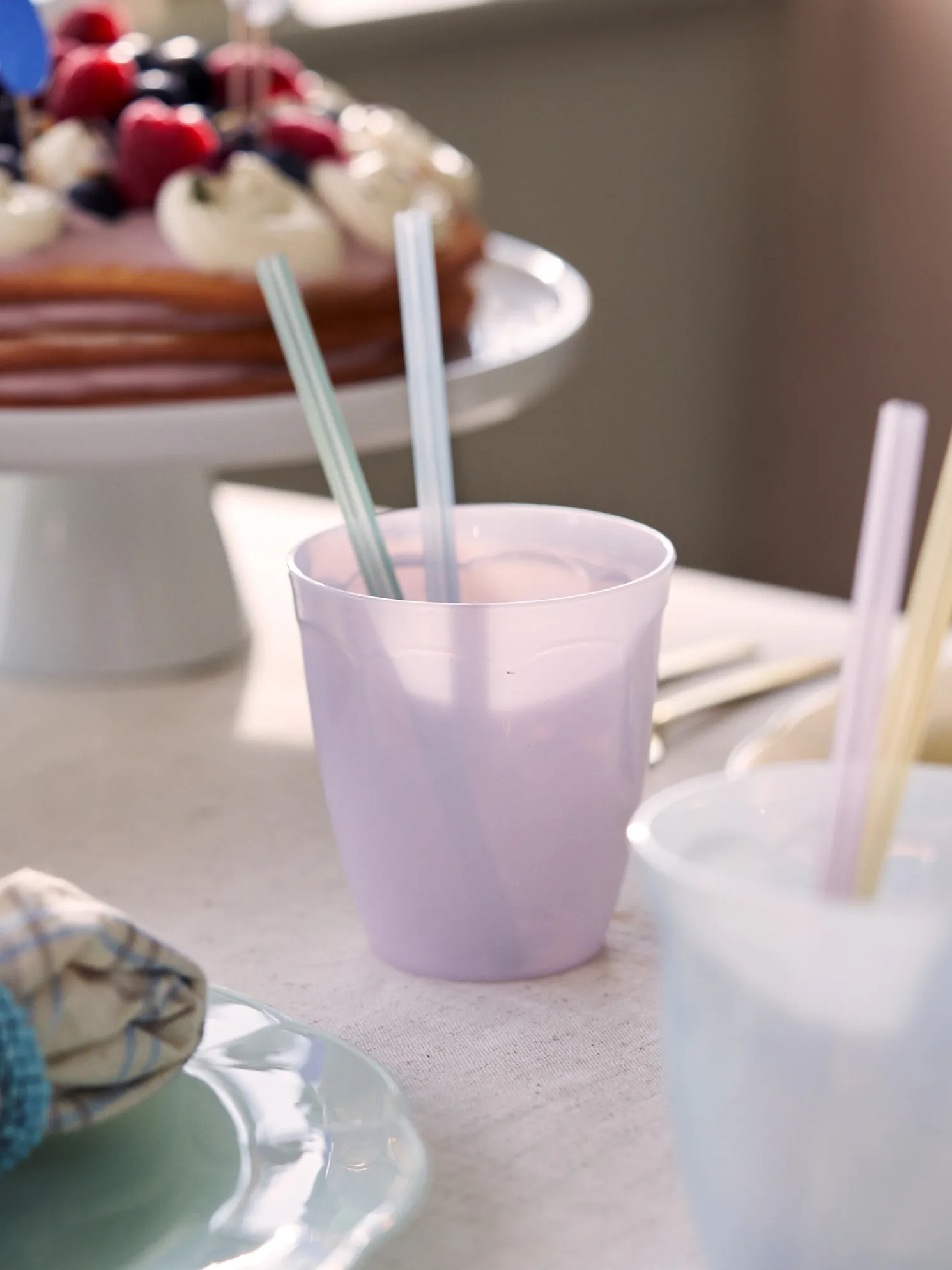 Die Polystyrol-Gläser der Schwestern haben einen Durchmesser von 8,5 cm und können wiederverwendet werden. Eine Packung enthält 4 Gläser. Die Gläser werden in Italien hergestellt.Die Gläser sind Teil unseres Sortiments an Mehrweg-Geschirr – für Picknicks, Strandausflüge und die kleinen und großen Momente des Lebens.Das Mehrwegsortiment dient als Alternative zu Einweg-Papptellern und -bechern, die wir im Rahmen der Verantwortungsstrategie von Søstrene Grene auslaufen lassen. Bei Søstrene Grene arbeiten wir Schritt für Schritt daran, ein Produktsortiment mit möglichst geringen Klimaauswirkungen zu schaffen, und dies ist nur eine unserer vielen Initiativen.Die Schwestern weisen freundlich darauf hin, dass diese Gläser gefrierfest und bis zu 70 Grad spülmaschinenfest sind, aber nicht mikrowellen- oder backofenfest.