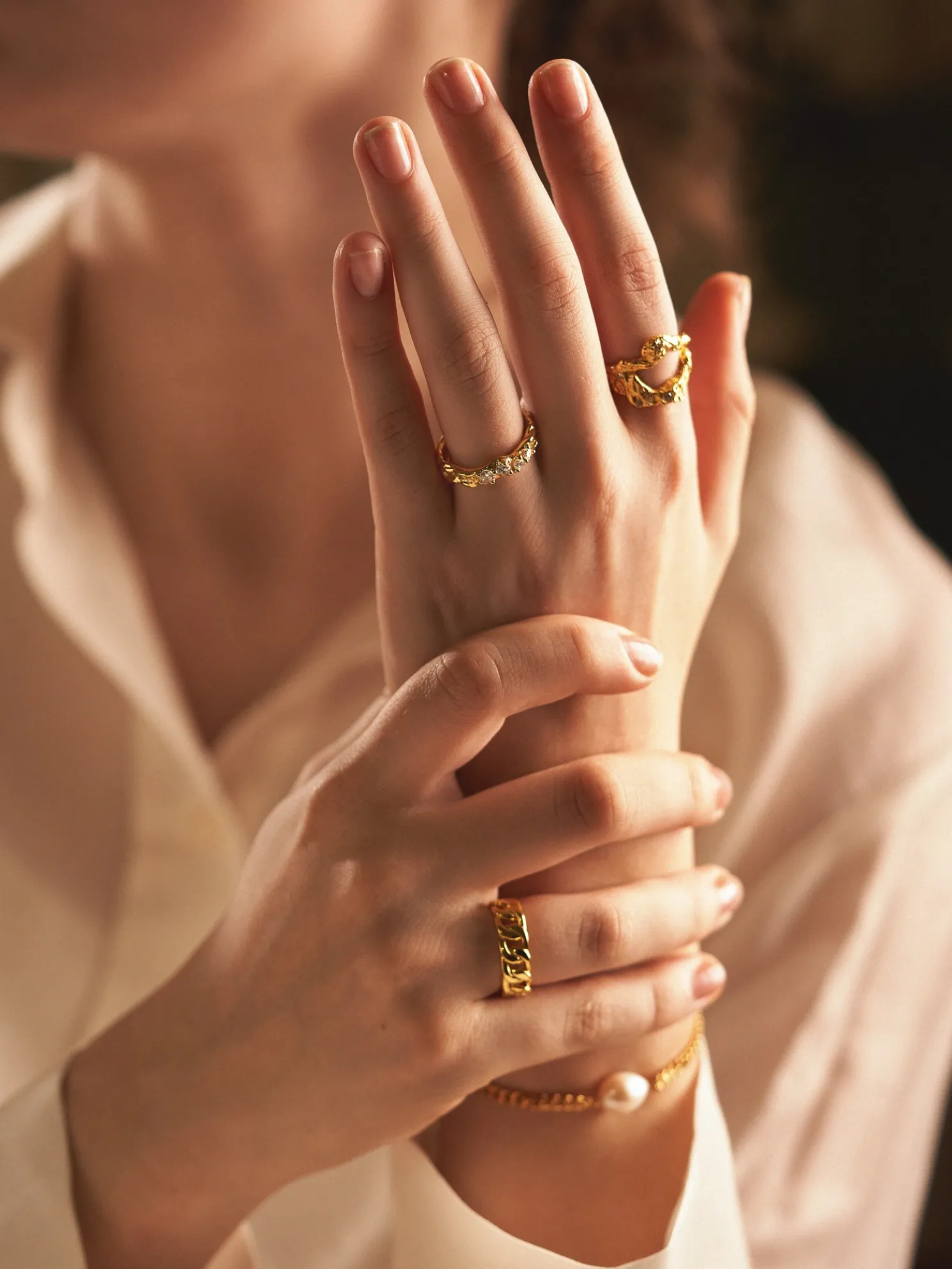 Der Aurora-Ring der dänischen Marke AndCopenhagen ist aus 925er Sterlingsilber gefertigt, mit 18 Karat Gold überzogen und verfügt außerdem über zwei schöne Zirkonia-Steine. Der Ring ist größenverstellbar und wird in einer schönen kleinen Schmuckbox geliefert.Anna und Clara weisen darauf hin, dass Sie den direkten Kontakt mit Feuchtigkeit und Flüssigkeiten vermeiden sollten, um eine bessere Haltbarkeit der Vergoldung zu gewährleisten.