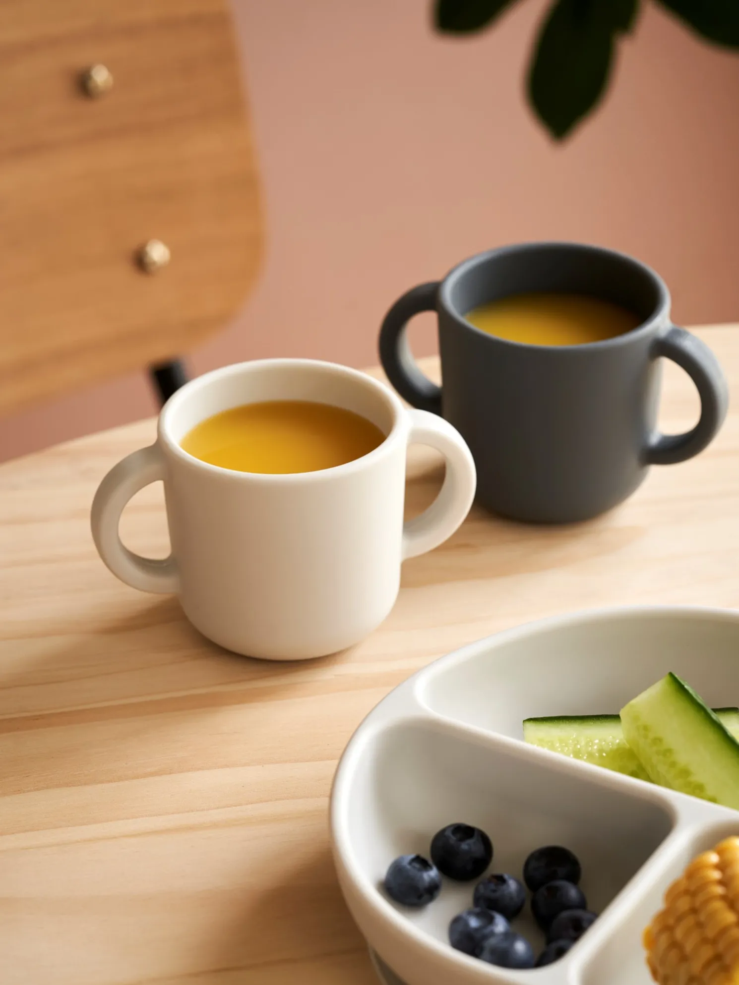Die Schwestern weisen freundlich darauf hin, dass dieses Produkt nur online erhältlich ist.Diese zwei Babybecher mit Henkeln von Ekobo fassen 150 ml und sind aus hochwertigem, lebensmittelechtem Silikon gefertigt, das ideal für kleine, ungeschickte Hände ist. Das Produkt ist sowohl spülmaschinen-, mikrowellen-, ofen- als auch gefrierfest (-40 °C bis 230 °C). „Wie praktisch für die Eltern“, schmunzelt Clara.Das entzückende Geschirr von Ekobo ist auf die Essgewohnheiten der Kleinen abgestimmt, und diese Becher helfen ihnen, von einer Flasche zu anderem Trinkgeschirr zu wechseln und gleichzeitig ihre sich entwickelnden Zähne zu schützen.„Stellen Sie sich nur vor, wie diese lieblichen Farben zu fröhlichen Familienmomenten am Esstisch beitragen würden“, fügt Anna begeistert hinzu.