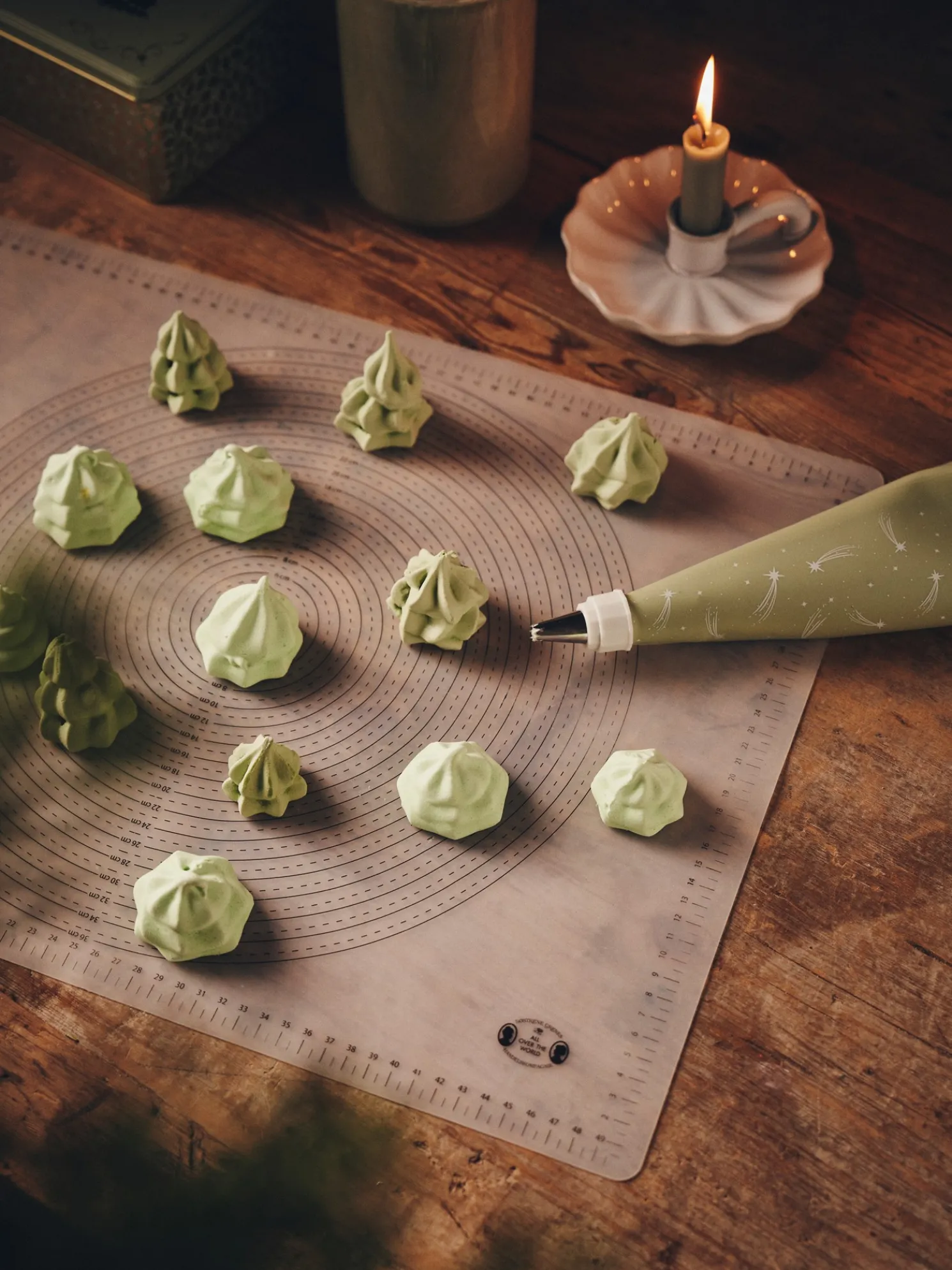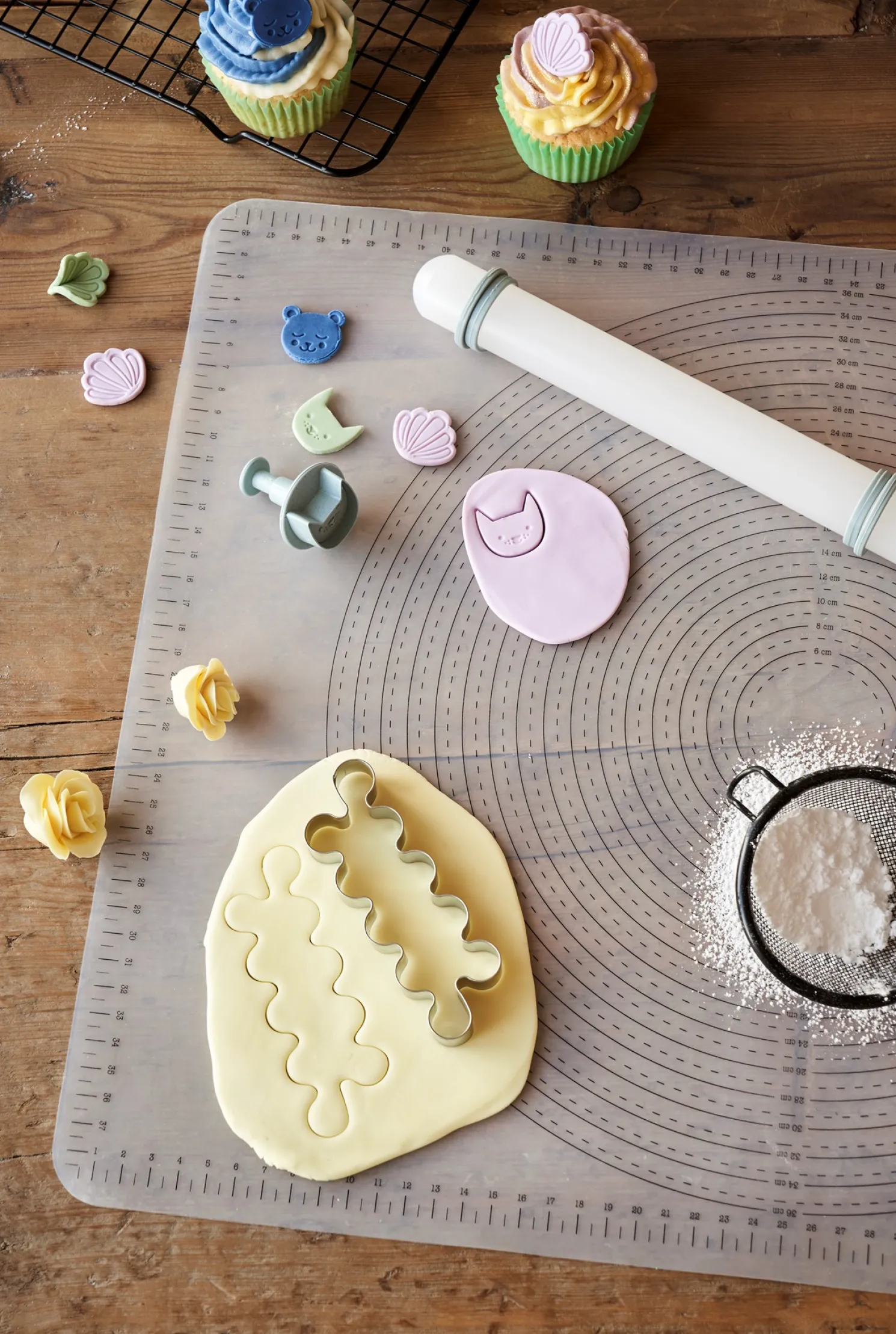 Anna und Clara backen gerne, und ihre Küche ist gefüllt mit allerlei wunderbarem Backartikeln, wie zum Beispiel diese schöne Backmatte. „Die Backmatte ist sehr praktisch und schützt die Küchenoberflächen, während Sie backen“, erklärt Clara. „Und mit den hilfreichen Illustrationen können Sie Ihre schönen Kreationen ganz einfach messen“, fügt Anna hinzu.