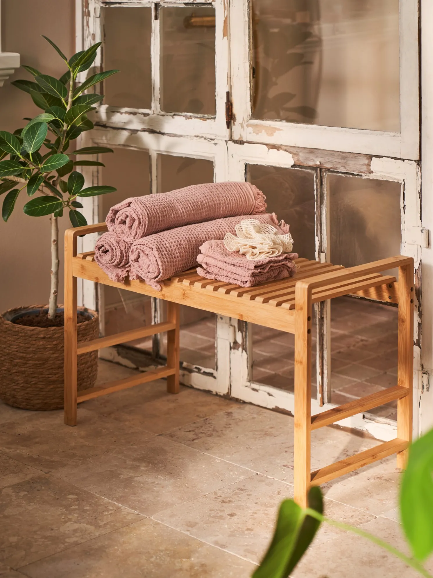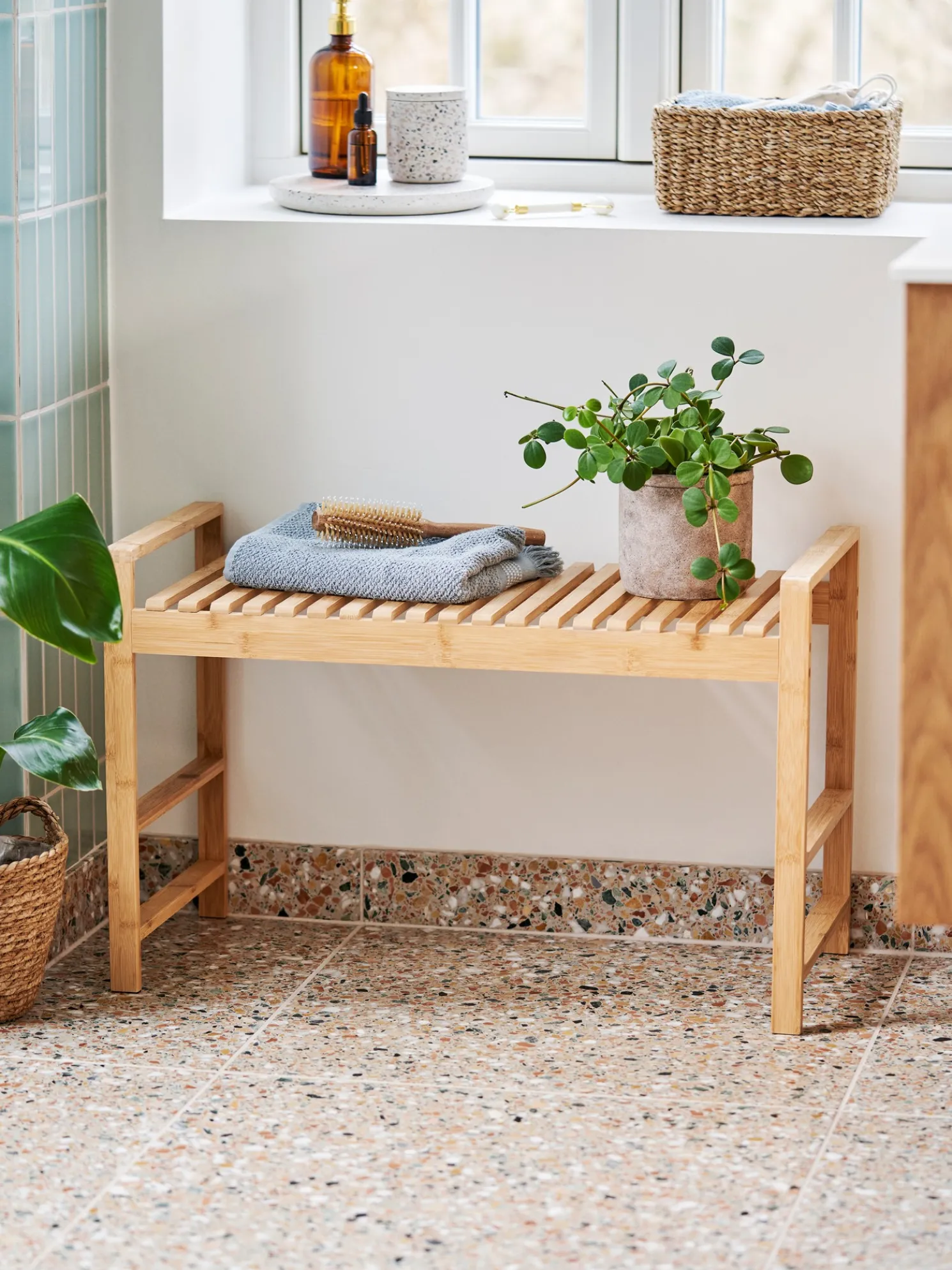 Die Bank der Schwestern besteht aus 100 % FSC®-zertifiziertem Bambus und misst 72 x 33 x 46 cm.