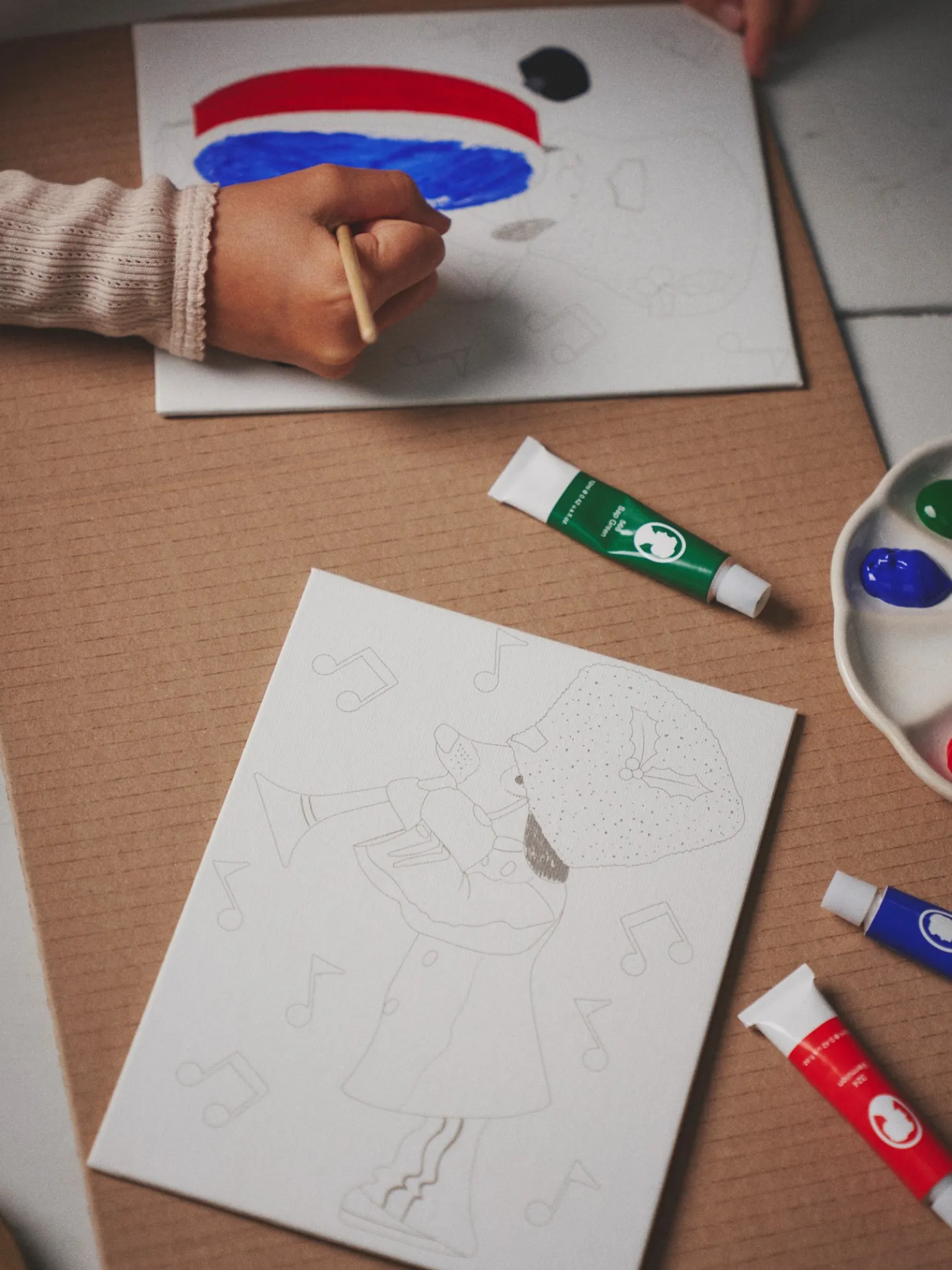 Die vorgedruckte Leinwand der Schwestern besteht aus Baumwolle und FSC®-zertifiziertem Papier.