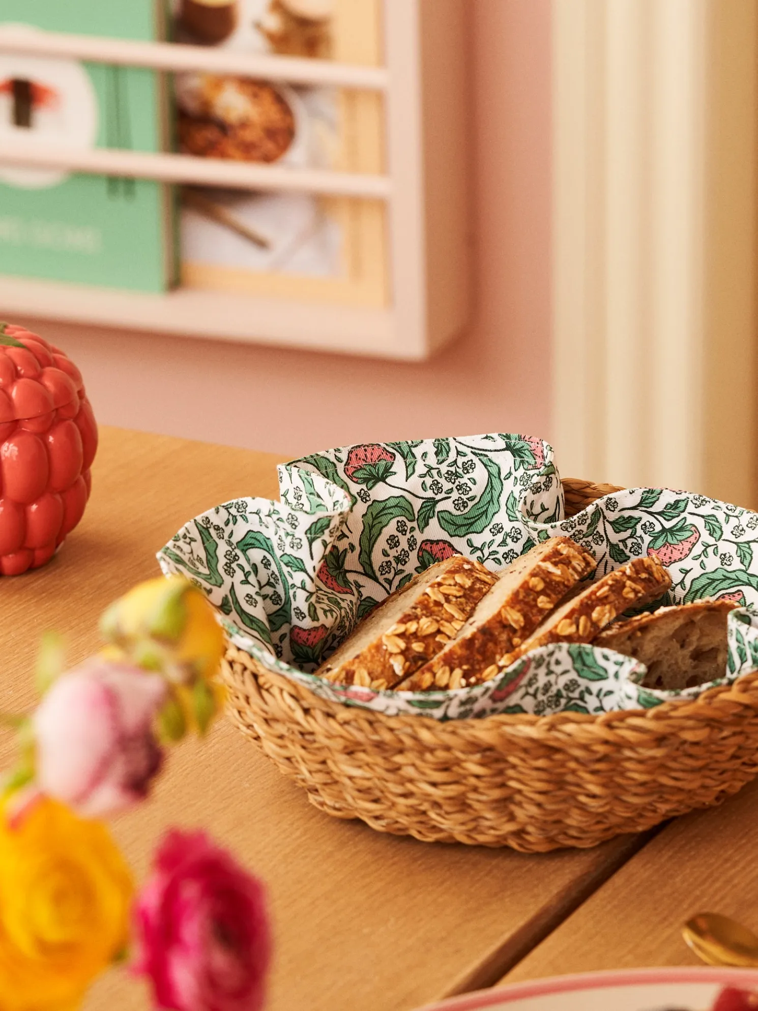 Die Brotkorbserviette der Schwestern ist STANDARD 100 by OEKO-TEX® zertifiziert. Sie können sie verwenden, um einen Korb oder eine Schüssel, die Sie bereits haben, zu drapieren und in einen Brotkorb zu verwandeln.