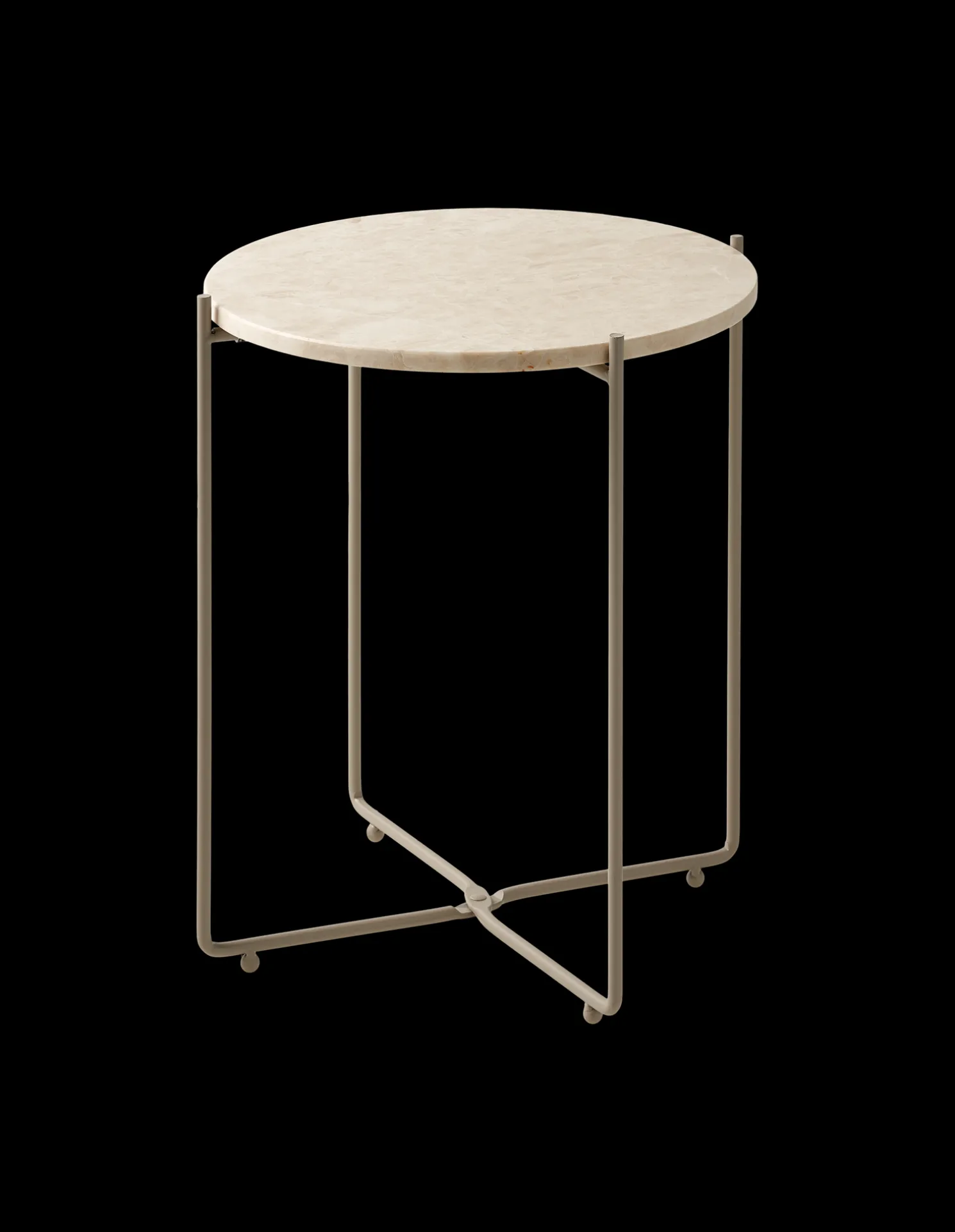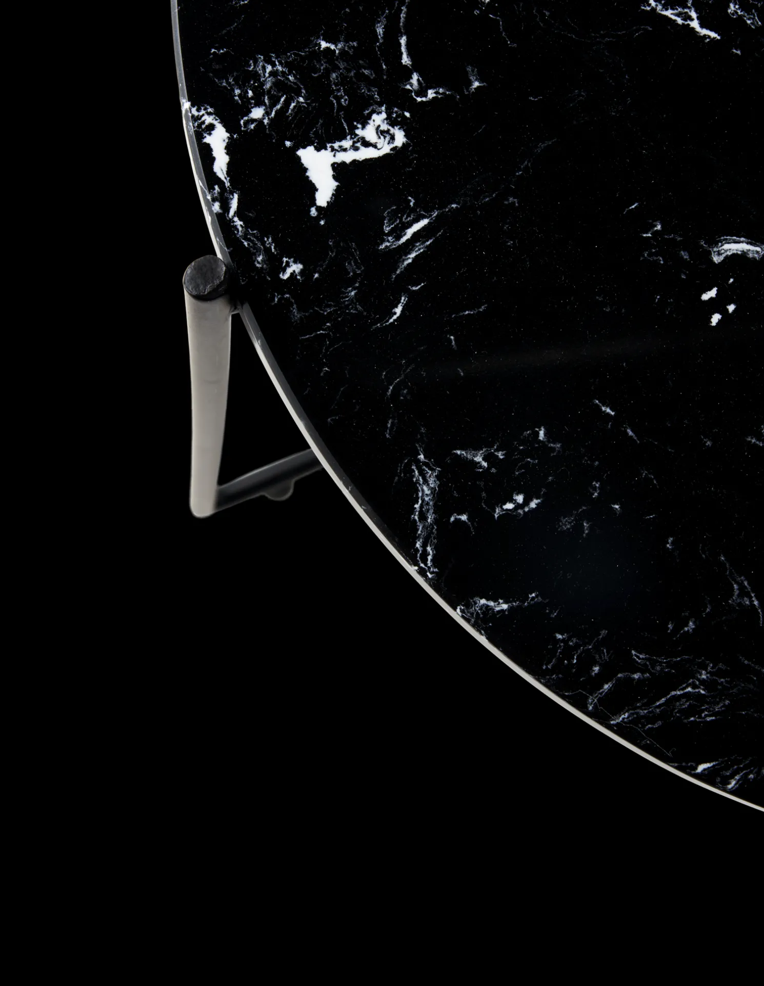 Der Beistelltisch der Schwestern besteht aus Eisen und einer Marmortischplatte. Der Couchtisch hat einen Durchmesser von 42 cm und eine Höhe von 47,5 cm.Da Marmor ein natürliches Material ist, weisen die Schwestern freundlich darauf hin, dass die Farbe leicht variieren kann.