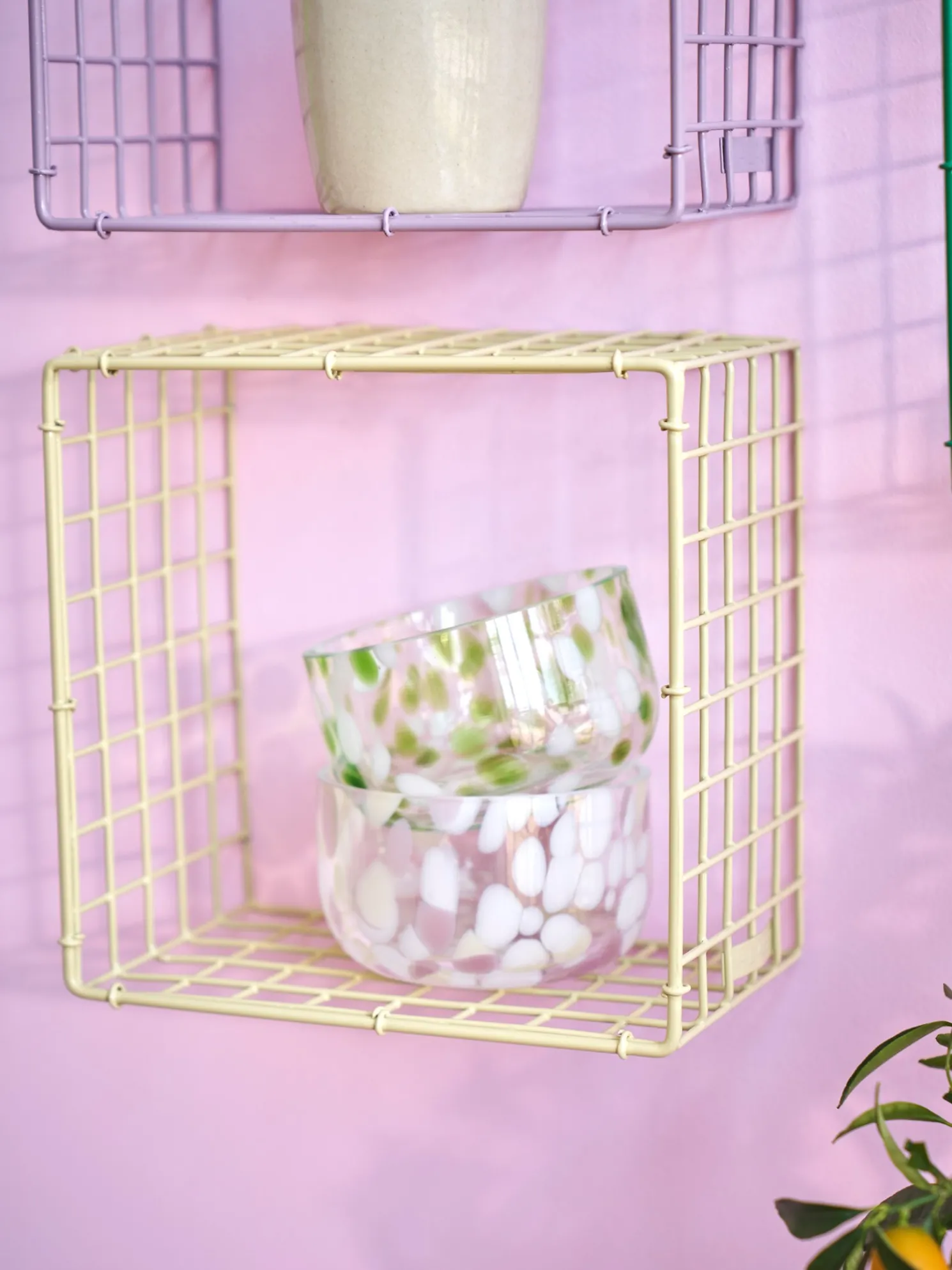 Die Schwestern weisen freundlich darauf hin, dass dieses Produkt nur online erhältlich ist.CUBE ist ein schönes Wandregal von Kalager Design. Es besteht aus Metall und misst 21 x 13,5 x 21 cm.„Ein farbenfrohes und stilvolles Regal in Form eines Drahtwürfels für einen dynamischen Look im Zuhause“, lächelt Anna, während sie eine kleine Sukkulente gießt, die sie auf das Regal gestellt hat, das die Schwestern im Flur aufgehängt haben. „Der minimalistische, industrielle Ausdruck verleiht Ihrem Interieur ein frisches Aussehen.“Die Schwestern weisen freundlich darauf hin, dass dieses Produkt handgefertigt ist und die Dicke und Linien des Drahtes daher etwas abweichen können. Dieses Produkt ist für den Innen- und Außenbereich geeignet.