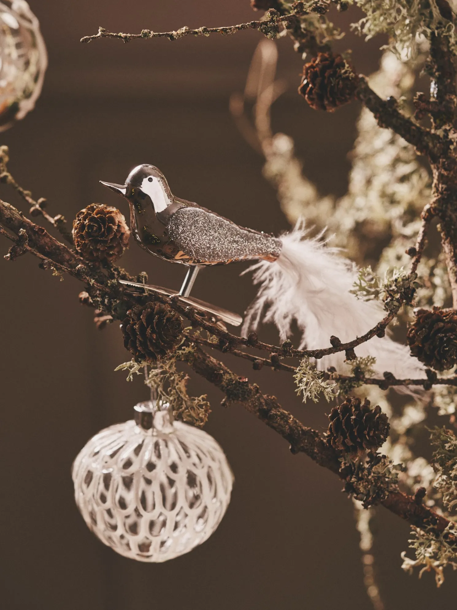 Der Deko-Vogel der Schwestern besteht aus Glas und PET. Er hat eine Feder als Schwanz und sitzt auf einer Eisenklammer. Der Anhänger hat eine Länge von 8 cm.