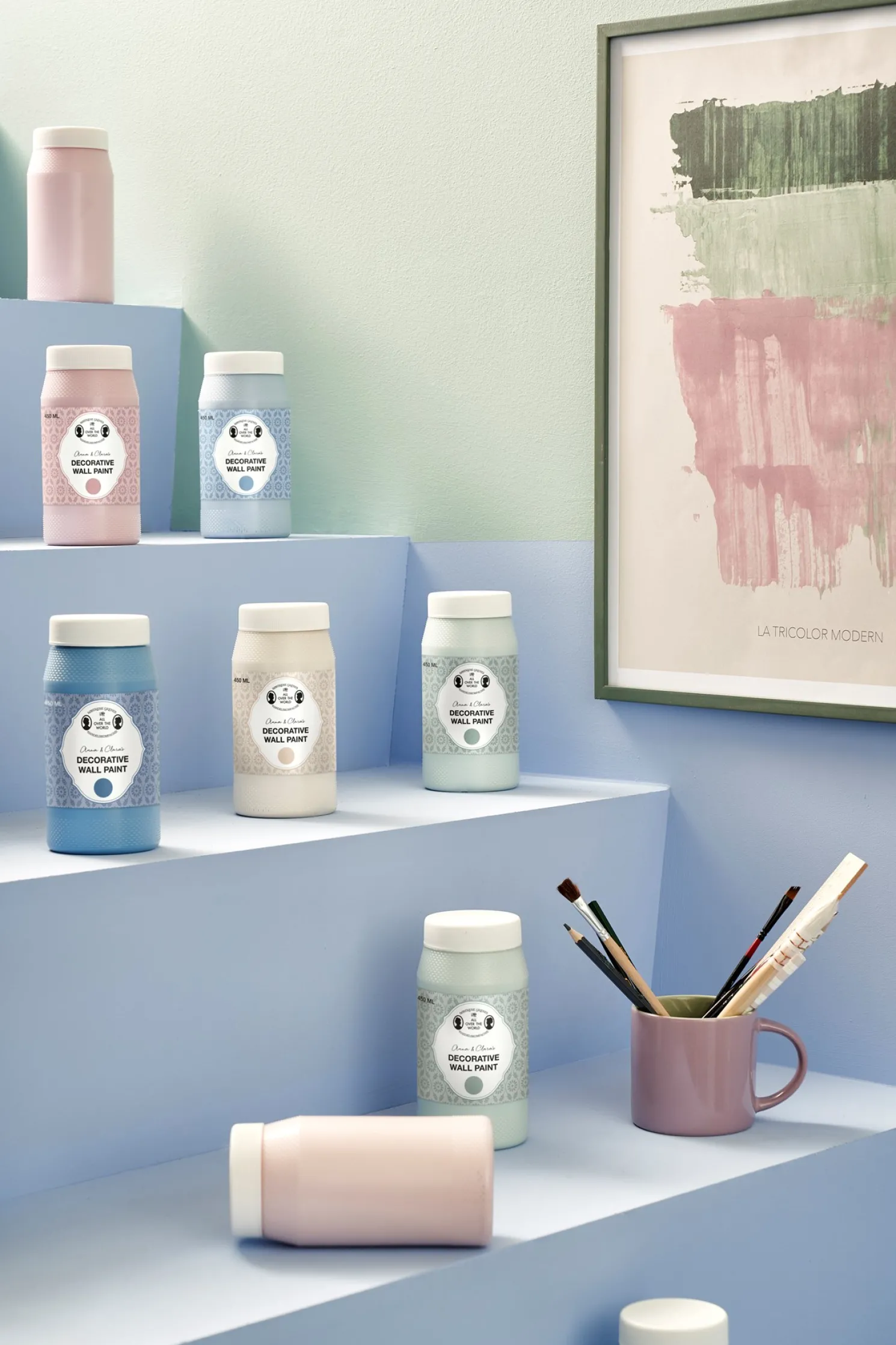 Die dekorative Wandfarbe der Schwestern trägt das Nordic Swan Ecolabel und enthält 450 ml Acrylfarbe. Sie wird in Dänemark hergestellt.„Malen Sie schöne Wandmalereien mit dieser Dekorationsfarbe“, schlägt Anna mit einem Lächeln vor. „Verwandeln Sie eine kahle Wand in Ihre Leinwand.“„Die Farbe ist wunderbar vielseitig, da sie auch auf Möbeln und anderen Holzoberflächen verwendet werden kann“, fügt Clara hinzu.Anna und Clara weisen darauf hin, dass diese Wandfarbe nur dekorativ ist und nicht zum Bemalen ganzer Wände verwendet werden soll.