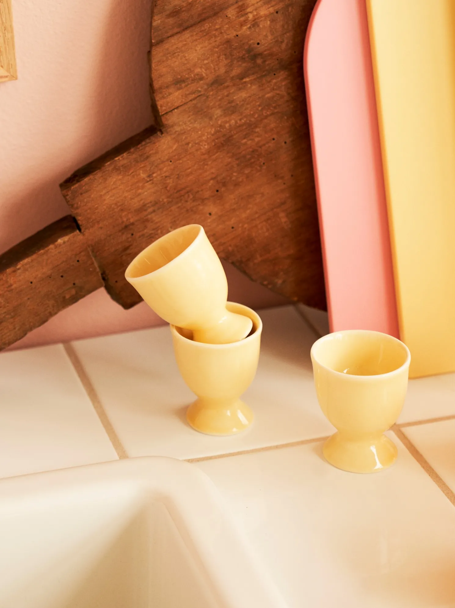 Der Eierbecher aus Steinzeug ist eine schöne Ergänzung für jeden Tisch und kann mit anderem Geschirr bunt gemischt und kombiniert werden.Da es sich um ein Steinzeugprodukt handelt, weisen die Schwestern darauf hin, dass Farbe und Ausdruck leicht variieren können.