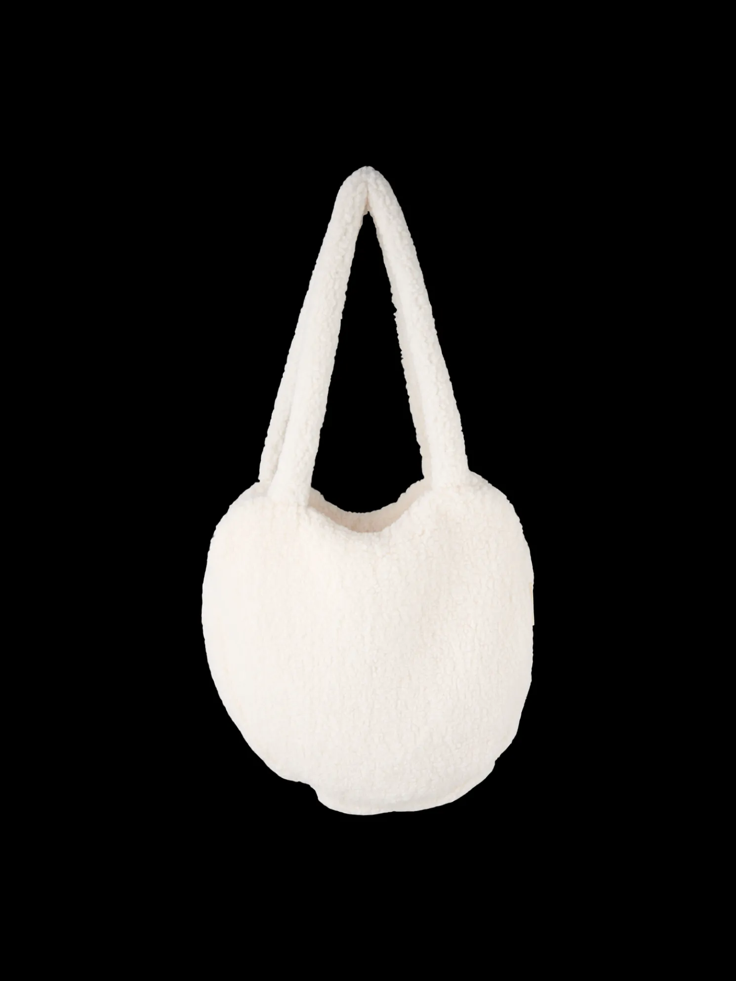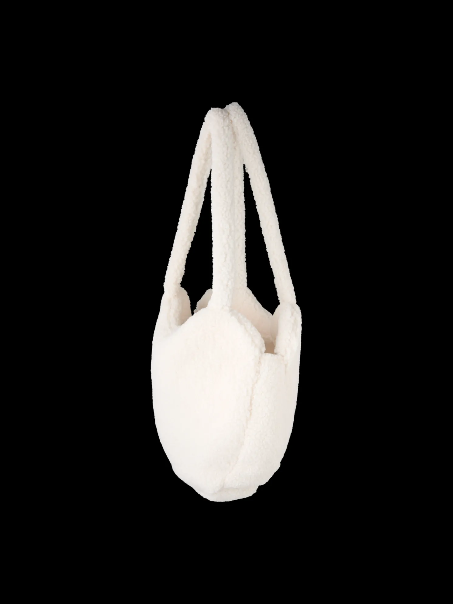 Die Kinder-Tragetasche der Schwestern ist aus weichem Teddy-Material gefertigt. Sie ist eine hübsche Ergänzung zur Accessoire-Kollektion der Lieben.