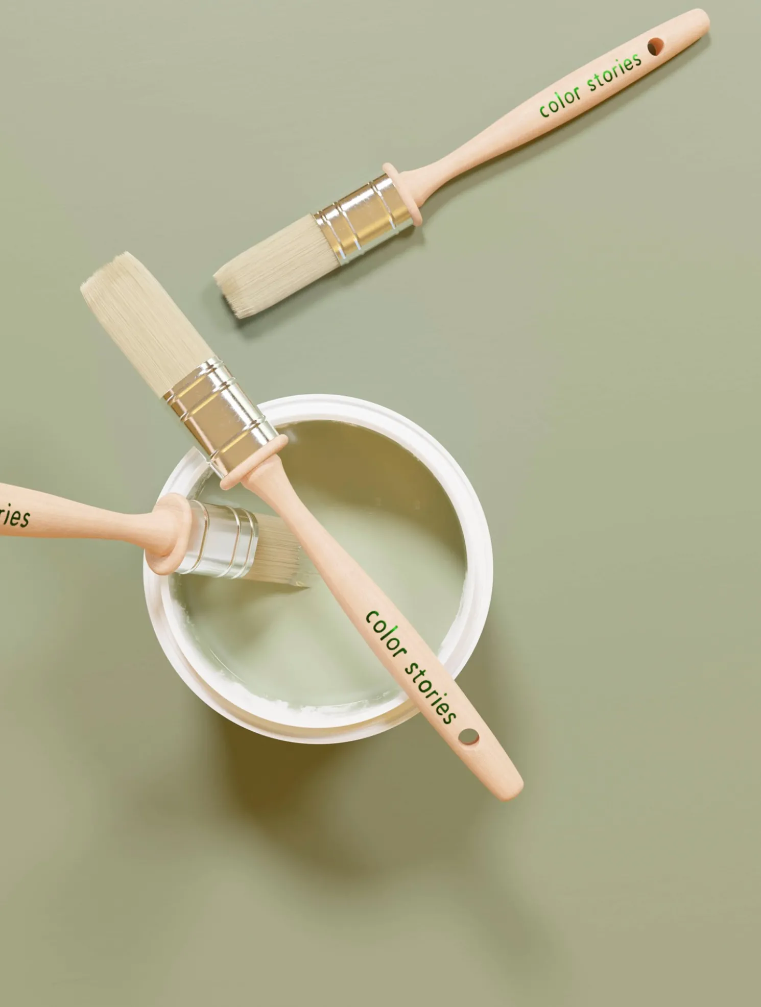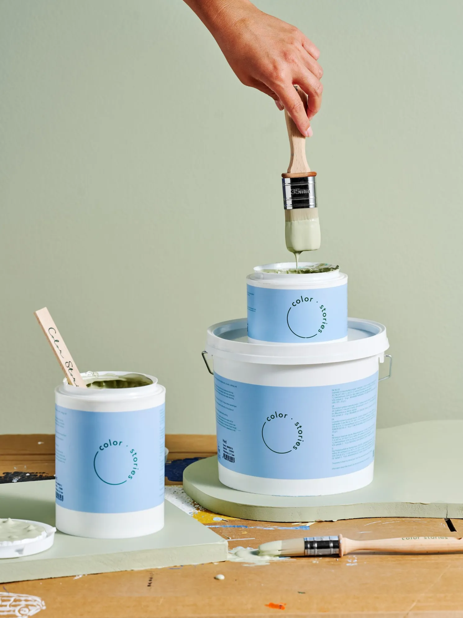 Die Schwestern weisen freundlich darauf hin, dass dieses Produkt nur online erhältlich ist.Die Farbe von Color Stories in der Farbe Avocado ist eine Acrylfarbe. Es wird in einem Eimer von 450 ml geliefert und deckt 3-4 m2 ab. Die Farbe kann auf einer Vielzahl von Oberflächen wie Wänden, Möbeln, Fensterrahmen und vielem mehr verwendet werden. Das Auftragen von zwei dünnen Schichten sorgt für eine ideale Deckkraft. Die Farbe wird in Dänemark hergestellt.„Farbe in Ihr Zuhause zu bringen, ist eine wunderbare Art, Ihrer Einrichtung eine persönliche Note zu verleihen“, freut sich Anna. Gerade hat sie zwei der Esszimmerstühle in den Lieblingsfarben der Schwestern gestrichen und schaut nun entschlossen zur Wand in ihrem Bastelzimmer.„Aber denk dran, alle Oberflächen abzudecken, damit sie nicht so viele Farbspritzer wie dein Gesicht bekommen, liebe Anna“, lacht Clara. „Stimmt“, sagt ihre Schwester. „Und wir müssen auch daran denken, Malerkrepp entlang der Ecken zu befestigen, um saubere Kanten zu haben.“Die Schwestern empfehlen, die Farbe zwischen den Schichten 6-12 Stunden trocknen zu lassen. Sie weisen darauf hin, dass die Farbe nicht mit Malerzubehör geliefert wird und dass die Farbe je nach Bildschirm ein wenig abweichen kann.Eine Anleitung zum Streichen finden Sie auf Anna und Claras Color Stories-Markenseite.