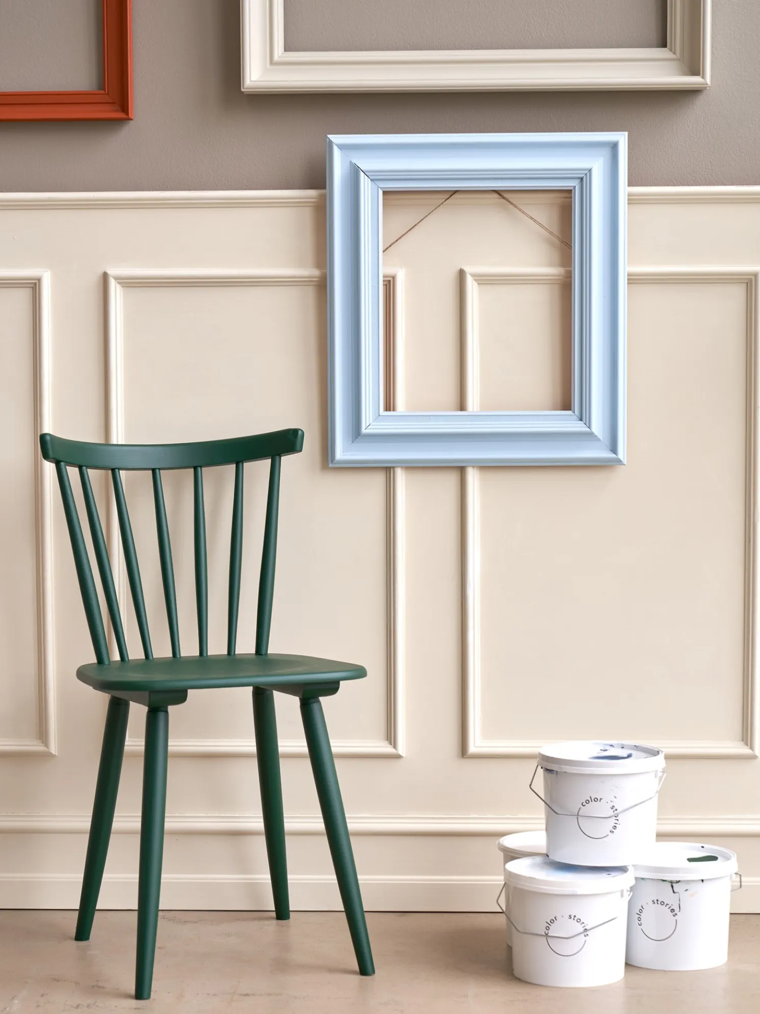 Die Schwestern weisen freundlich darauf hin, dass dieses Produkt nur online erhältlich ist. Die Farbe Boy-Oh-Boy von Color Stories ist eine Acrylfarbe. Sie ist in einem Eimer à 900 ml, der 6-8 m2 deckt. Die Farbe kann auf einer Vielzahl von Oberflächen wie Wänden, Möbeln, Fensterrahmen und vielem mehr verwendet werden. Das Auftragen von zwei dünnen Schichten sorgt für eine ideale Deckkraft. Die Farbe wird in Dänemark hergestellt.„Farbe in Ihr Zuhause zu bringen, ist eine wunderbare Art, Ihrer Einrichtung eine persönliche Note zu verleihen“, freut sich Anna. Gerade hat sie zwei der Esszimmerstühle in den Lieblingsfarben der Schwestern gestrichen und schaut nun entschlossen zur Wand in ihrem Bastelzimmer.„Aber denk dran, alle Oberflächen abzudecken, damit sie nicht so viele Farbspritzer wie dein Gesicht bekommen, liebe Anna“, lacht Clara. „Stimmt“, sagt ihre Schwester. „Und wir müssen auch daran denken, Malerkrepp entlang der Ecken zu befestigen, um saubere Kanten zu haben.“Die Schwestern empfehlen, die Farbe zwischen den Schichten 6-12 Stunden trocknen zu lassen. Sie weisen darauf hin, dass die Farbe nicht mit Malerzubehör geliefert wird und dass die Farbe je nach Bildschirm ein wenig abweichen kann. Eine Anleitung zum Streichen finden Sie auf Anna und Claras Color Stories-Markenseite.