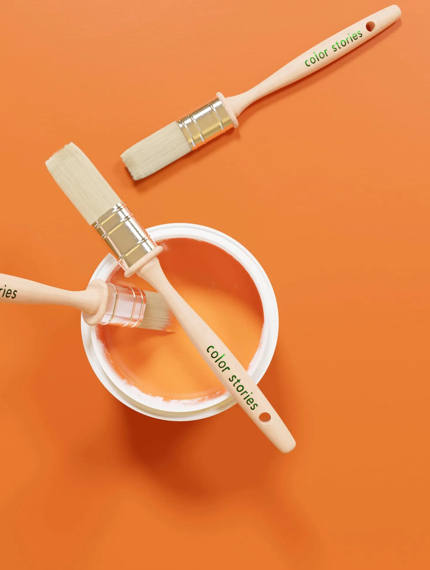 Die Schwestern weisen freundlich darauf hin, dass dieses Produkt nur online erhältlich ist. Die Farbe Pumpkin von Color Stories ist eine Acrylfarbe. Sie ist in einem Eimer à 450 ml und deckt 3-4 m2. Die Farbe kann auf einer Vielzahl von Oberflächen wie Wänden, Möbeln, Fensterrahmen und vielem mehr verwendet werden. Das Auftragen von zwei dünnen Schichten sorgt für eine ideale Deckkraft. Die Farbe wird in Dänemark hergestellt.„Farbe in Ihr Zuhause zu bringen, ist eine wunderbare Art, Ihrer Einrichtung eine persönliche Note zu verleihen“, freut sich Anna. Gerade hat sie zwei der Esszimmerstühle in den Lieblingsfarben der Schwestern gestrichen und schaut nun entschlossen zur Wand in ihrem Bastelzimmer.„Aber denk dran, alle Oberflächen abzudecken, damit sie nicht so viele Farbspritzer wie dein Gesicht bekommen, liebe Anna“, lacht Clara. „Stimmt“, sagt ihre Schwester. „Und wir müssen auch daran denken, Malerkrepp entlang der Ecken zu befestigen, um saubere Kanten zu haben.“Die Schwestern empfehlen, die Farbe zwischen den Schichten 6-12 Stunden trocknen zu lassen. Sie weisen darauf hin, dass die Farbe nicht mit Malerzubehör geliefert wird und dass die Farbe je nach Bildschirm ein wenig abweichen kann. Eine Anleitung zum Streichen finden Sie auf Anna und Claras Color Stories-Markenseite.