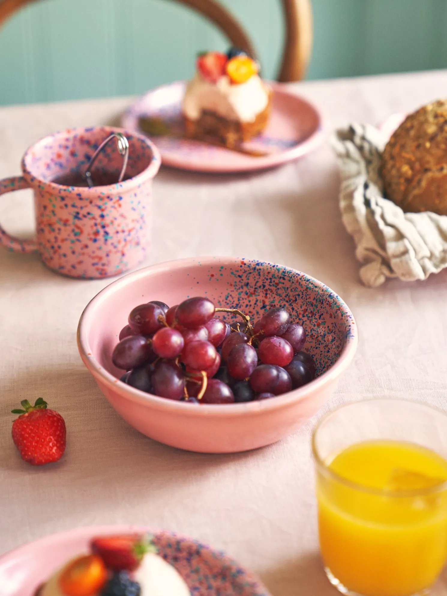 Die Schwestern weisen freundlich darauf hin, dass dieses Produkt nur online erhältlich ist.Die Flow Fest Emailleschale von Kapka hat einen Durchmesser von 17 cm. Sie ist spülmaschinenfest.„Das sieht fast aus wie Konfetti“, ruft der Neffe, hält die bunte Emailleschüssel hoch und hält sie Clara hin, damit sie ihm etwas einschenken kann. Die Schwestern haben die Kinder zu einem Picknick in ihren Lieblingspark eingeladen. Der Picknickkorb ist prall gefüllt mit Leckereien, erfrischenden Getränken und praktischem Geschirr.„Diese Art von Geschirr ist unglaublich nützlich für Picknicks, da es leicht und robust ist“, erklärt Clara. „In der Tat, liebe Schwester. Aber es sieht auch wunderbar hübsch auf einem schön gedeckten Tisch zu Hause aus“, fügt Anna mit einem Lächeln hinzu.Die Schwestern erinnern Sie daran, beim Umgang mit Emaillegeschirr vorsichtig zu sein, wenn es mit heißen Flüssigkeiten gefüllt ist.