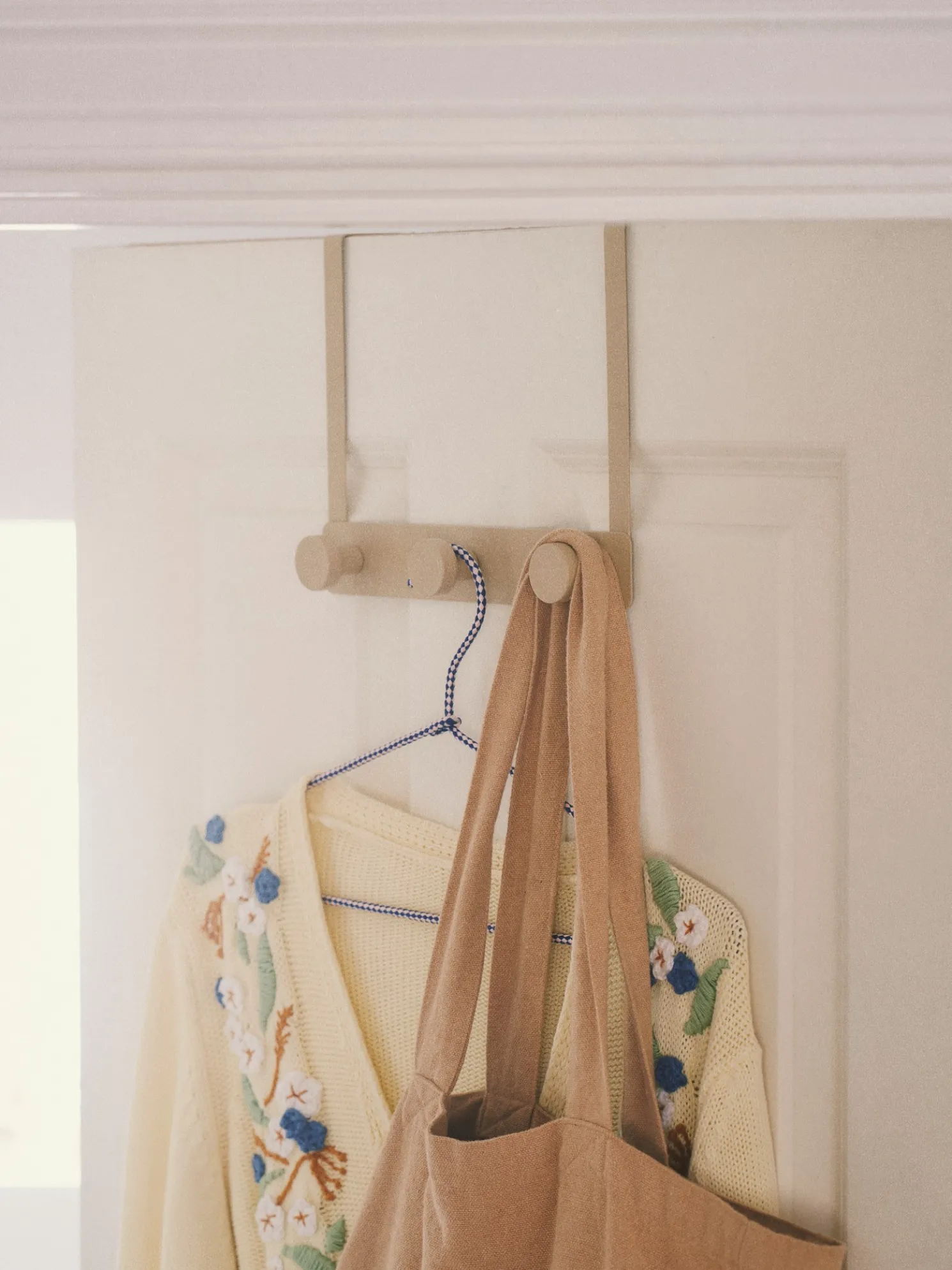 Die Garderobenleiste der Schwestern verfügt über 3 Haken an der Vorderseite und Haken zum Aufhängen über einer Tür, die eine platzsparende und praktische Lösung für Ihr Zuhause bieten.