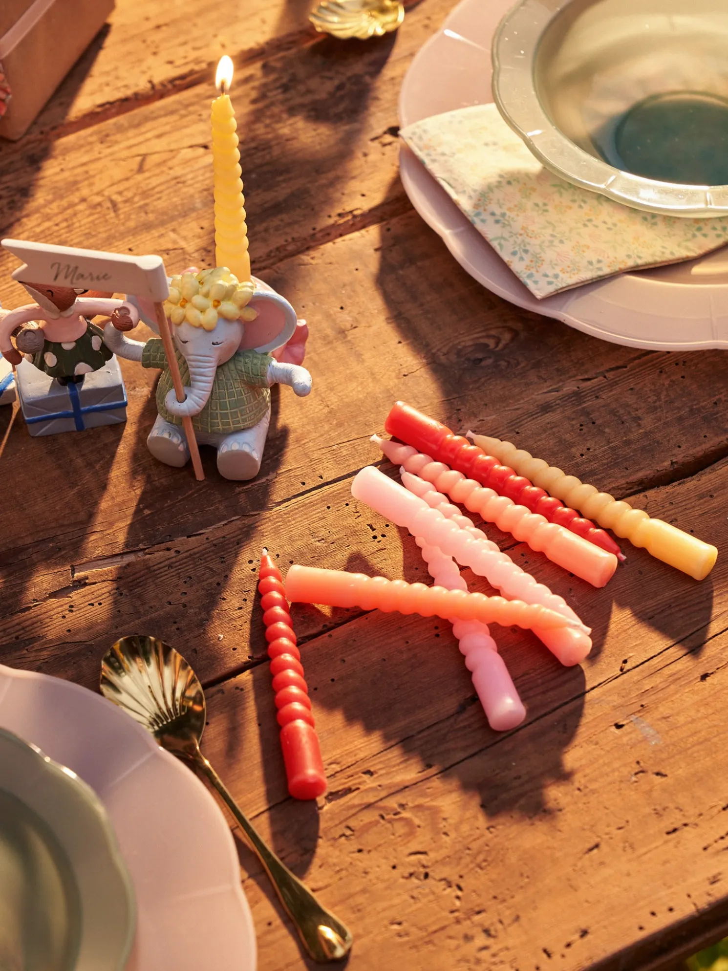 Die gedrehten Kerzen der Schwestern haben einen Durchmesser von 1,2 cm und eine Höhe von 10 cm. Sie haben eine ungefähre Brenndauer von 1 Stunde.