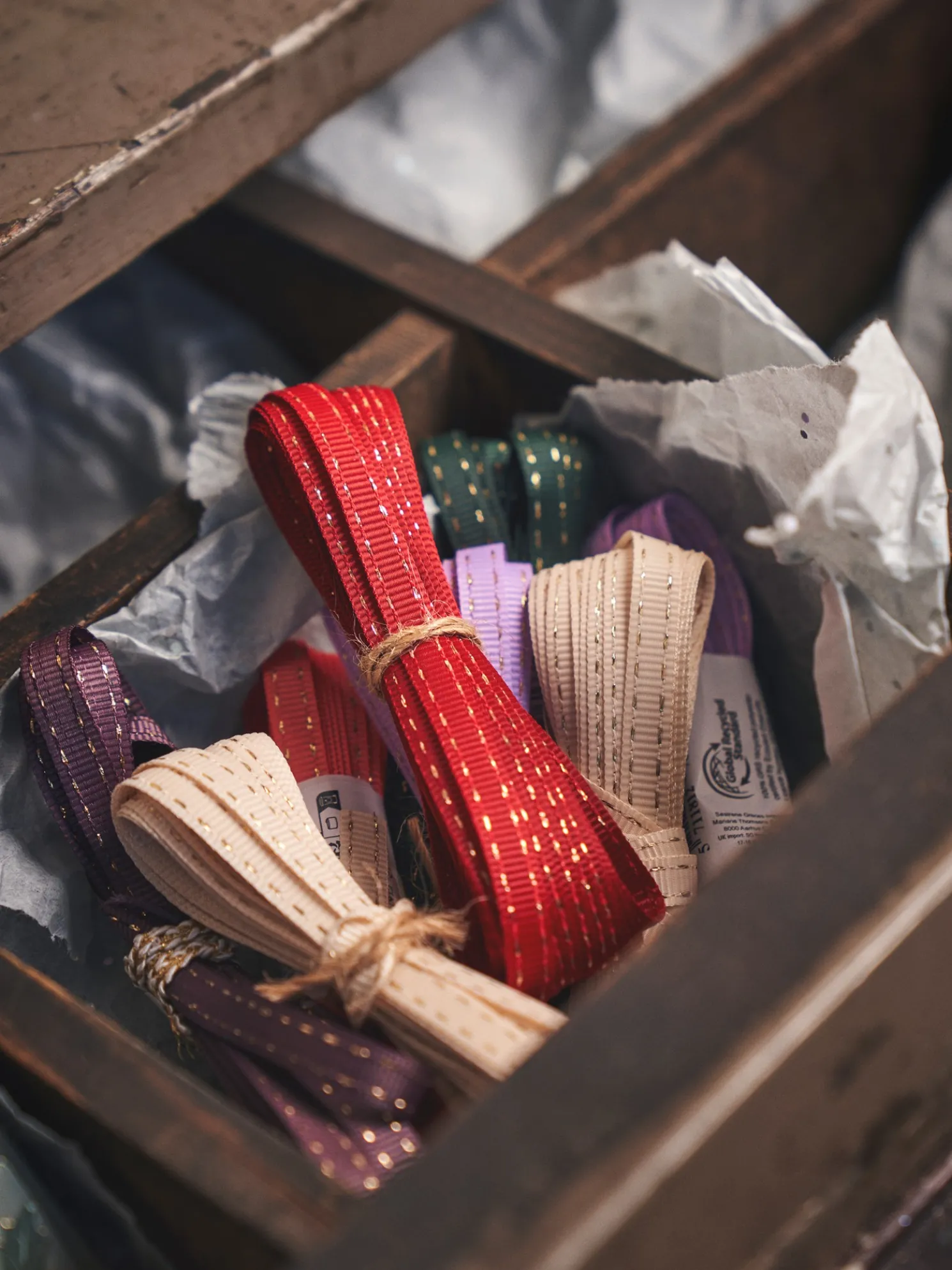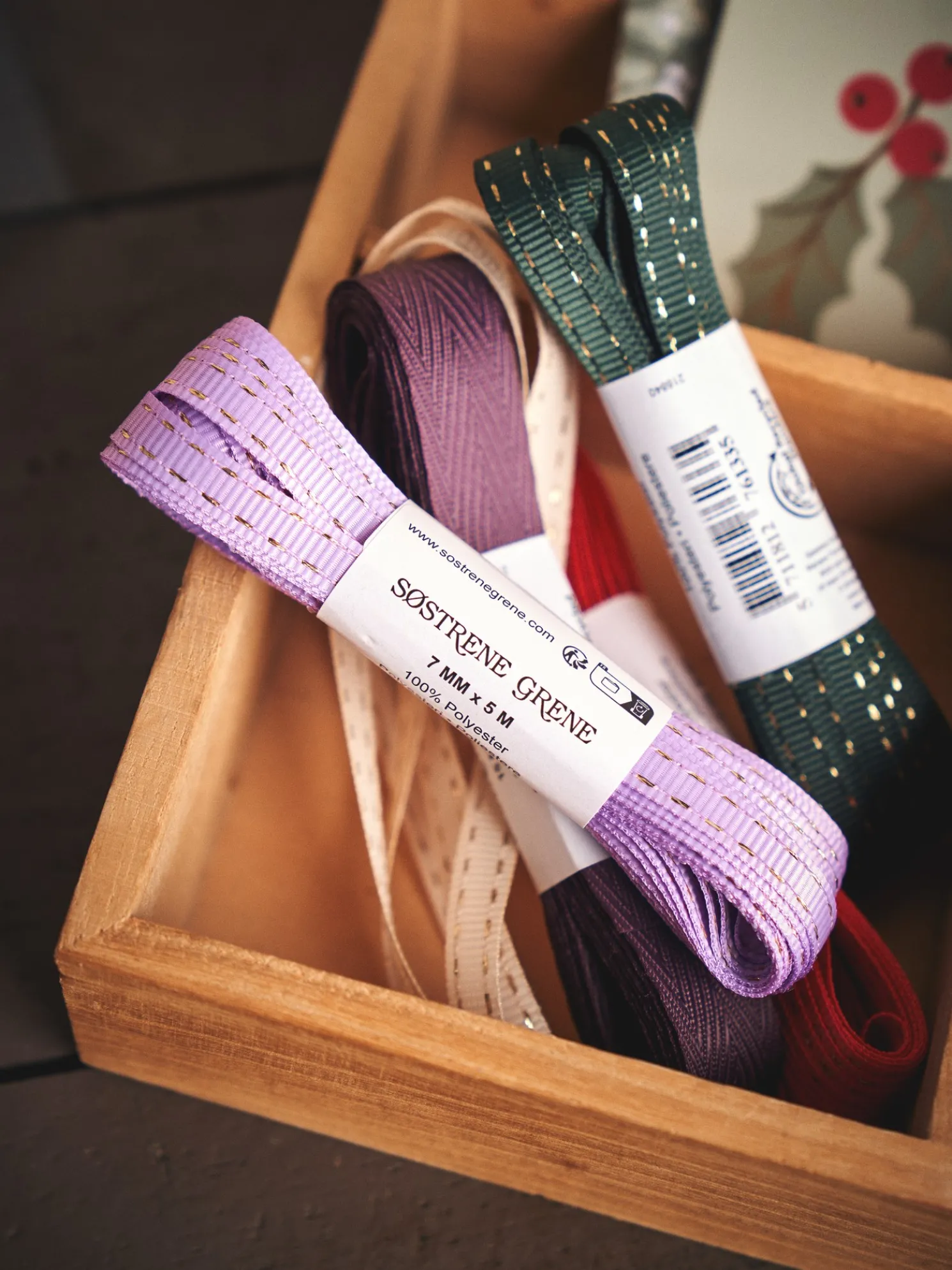 Das Band der Schwestern besteht aus 100 % GRS-zertifiziertem* Polyester und misst 7 mm x 5 m.*Certified by Ecocert Greenlife, license number 197533