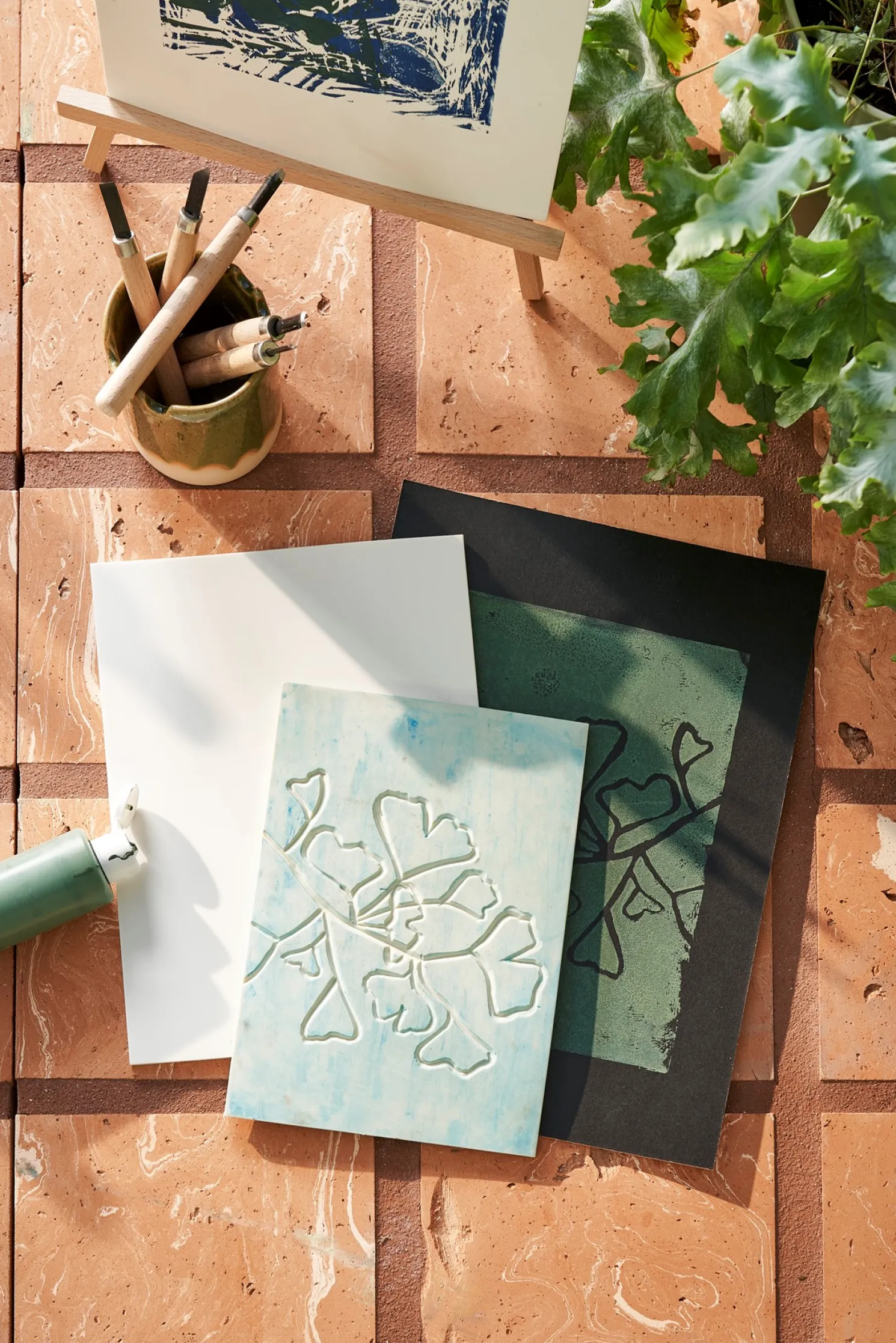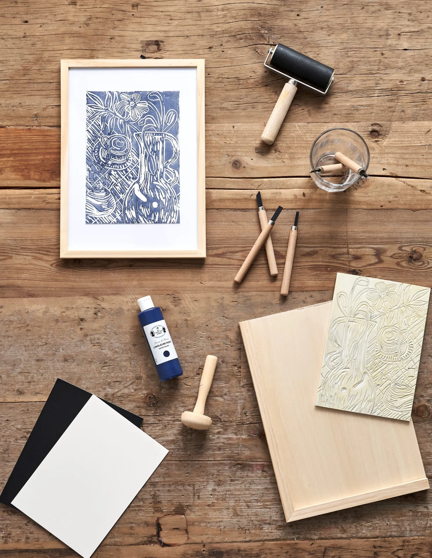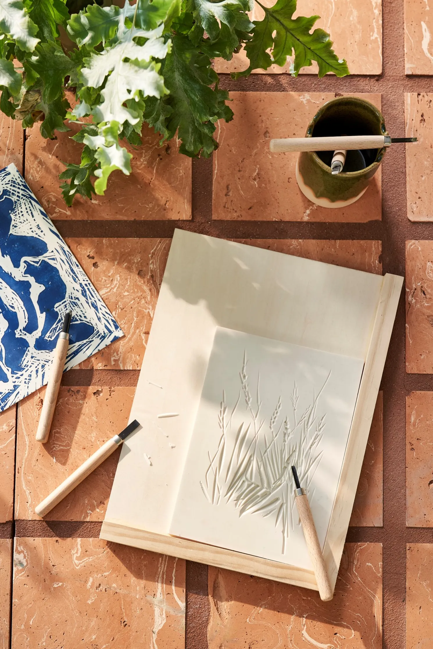Die Platte für den Linolschnitt besteht aus thermoplastischem Gummi. Sie hat eine Dicke von 0,5 cm und hat ein A5-Format. Verwenden Sie Linolschnitt-Schnitzwerkzeuge, um schöne Muster in die Platte zu schneiden.