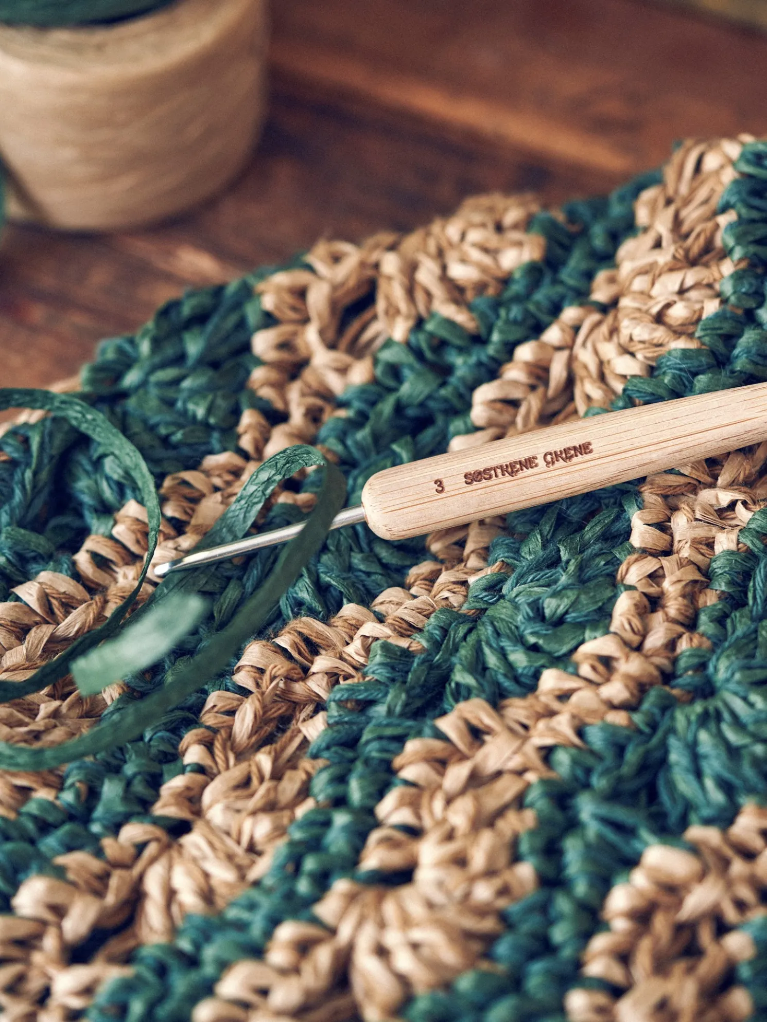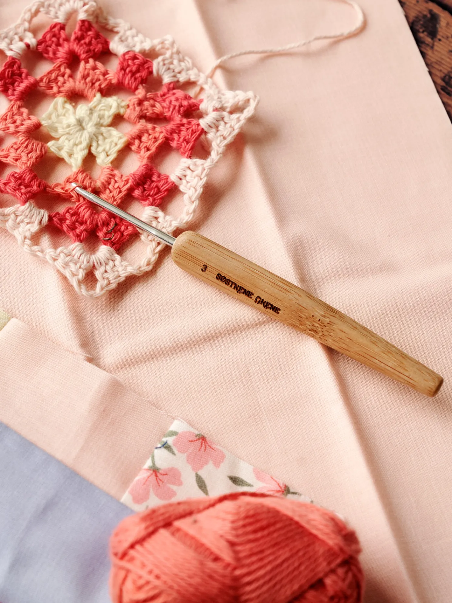 Die Häkelnadel der Schwestern besteht aus Bambus und hat eine Größe von 3 mm.