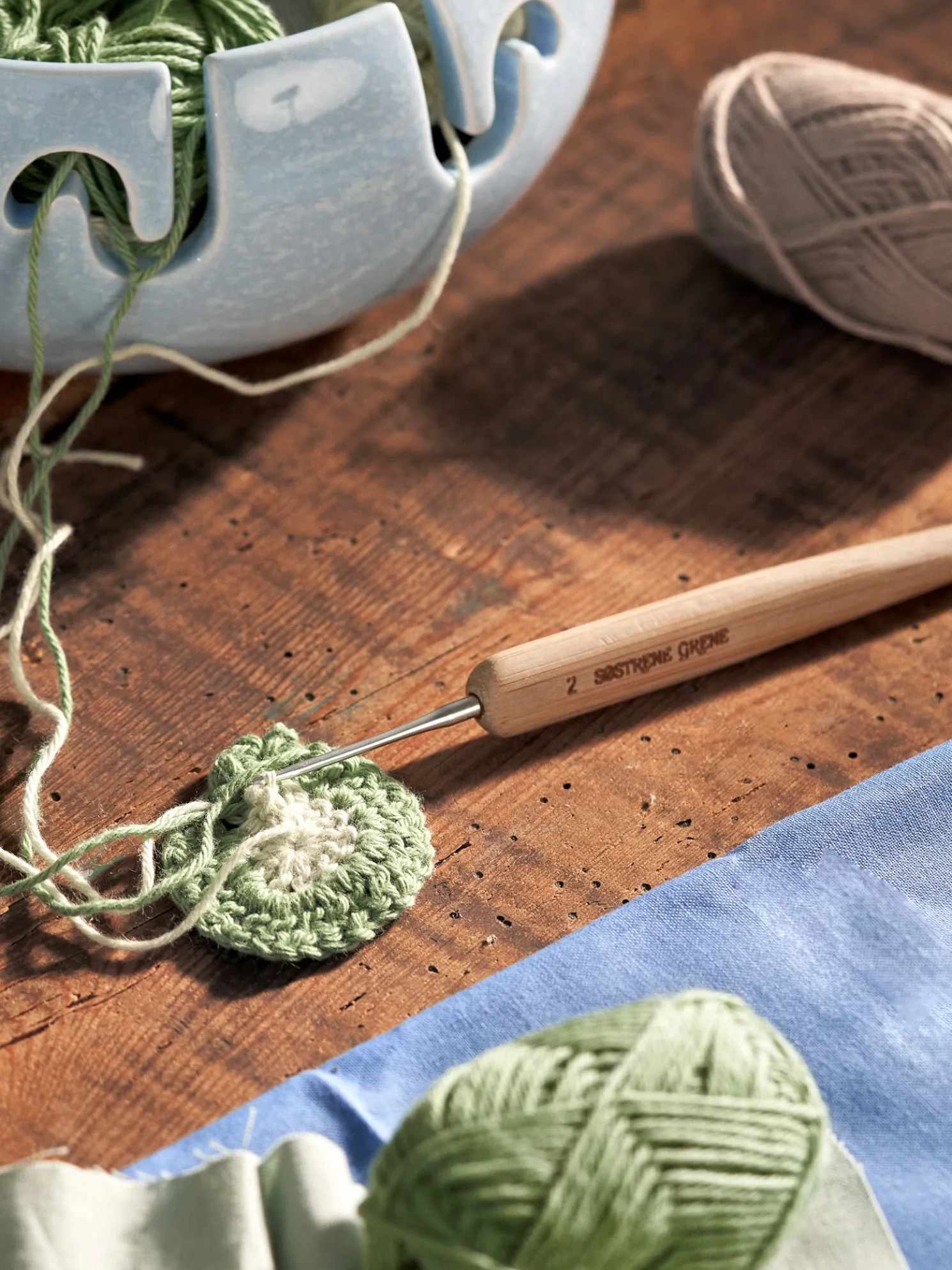 Die Häkelnadel der Schwestern besteht aus Bambus und hat eine Größe von 2 mm.