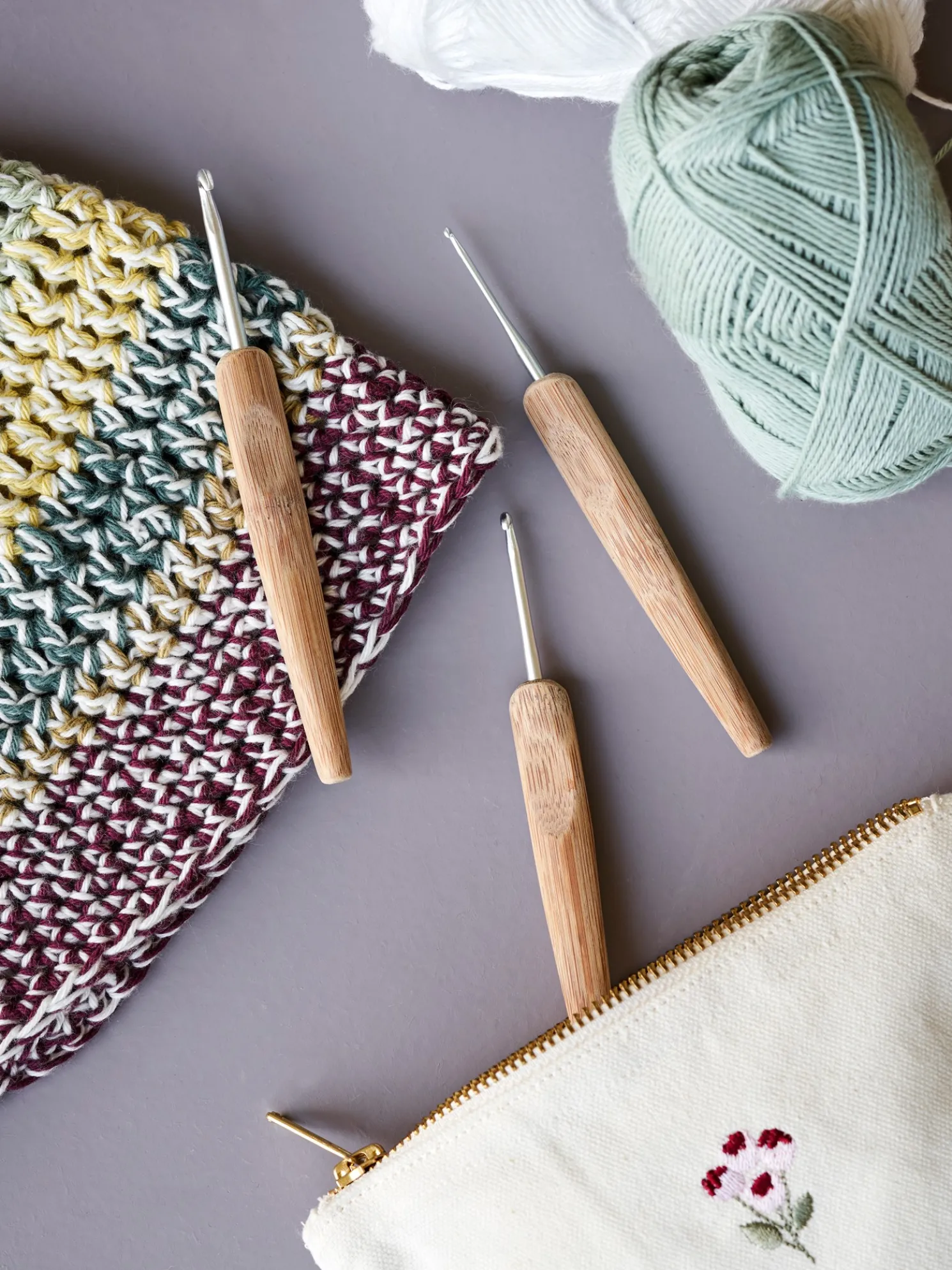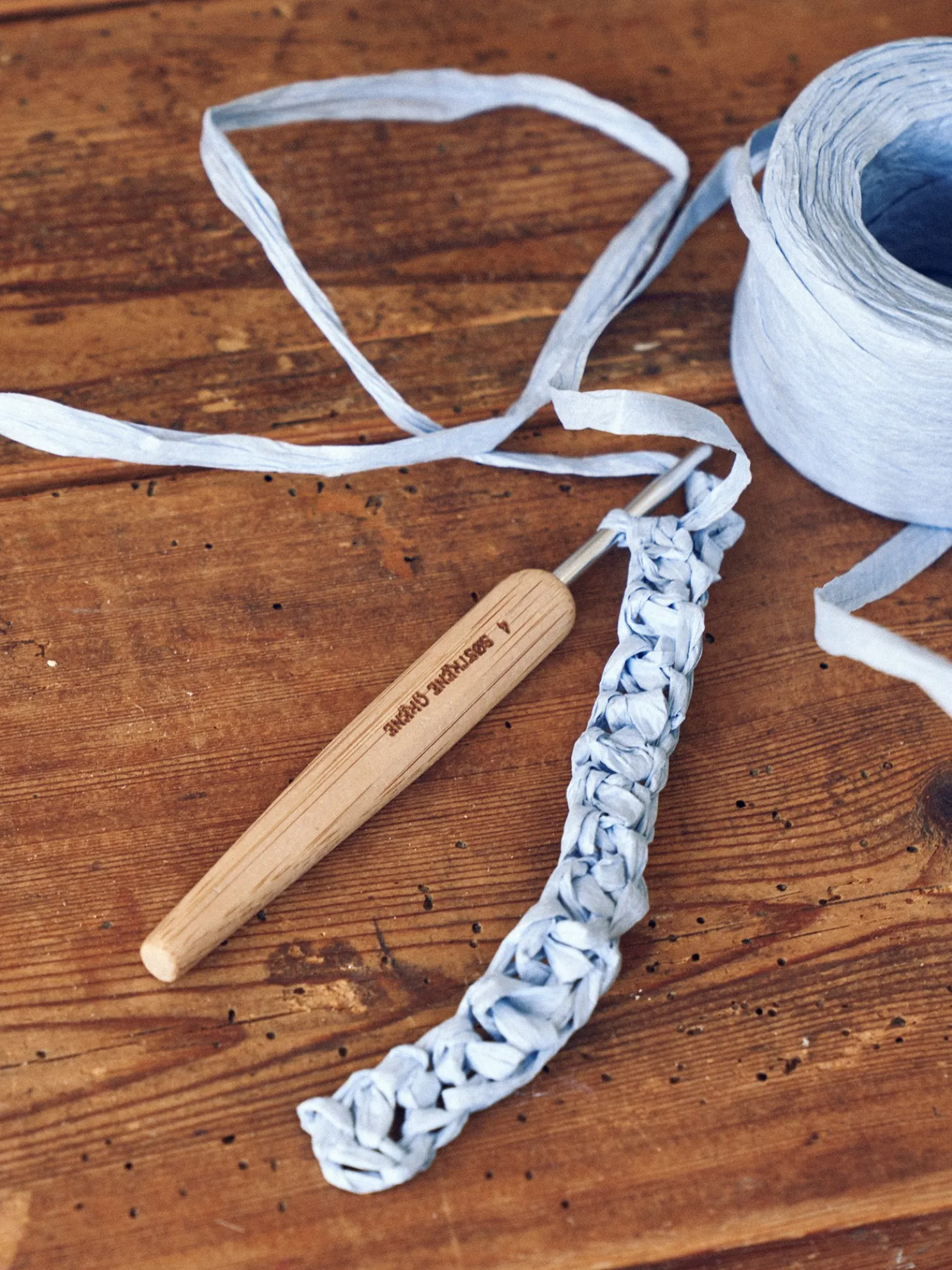 Die Häkelnadel der Schwestern besteht aus Bambus und hat eine Größe von 4 mm.