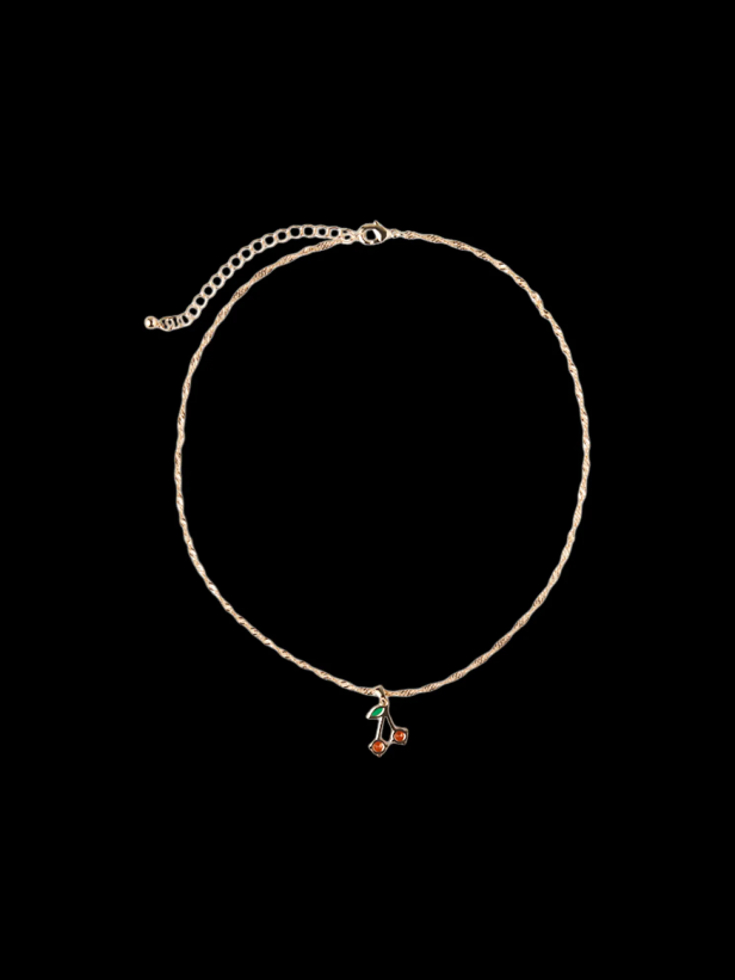 Die Halskette der Schwestern hat eine Länge von 46 cm und ist mit einem schönen Kirschanhänger versehen.
