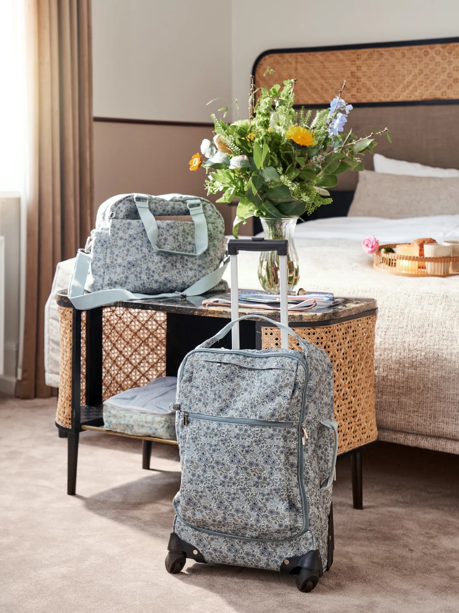 Die Handgepäck-Tasche der Schwestern besteht aus GRS-zertifiziertem* Polyester sowie Polypropylen und Aluminium. Sie misst 35 x 20,5 x 55 cm und hat vier Rollen.„Auf ins Abenteuer!“ ruft Clara begeistert, während sie ihre sieben Sachen packt und alles ordentlich in ihrer Handgepäck-Tasche verstaut. „Ich bin auch schon ganz aufgeregt“, antwortet Anna. „Hoffen wir, dass wir nichts vergessen haben. Auch wenn ich mir das nur schwer vorstellen kann mit einer organisierten Schwester wie dir, liebe Clara“, fügt sie mit einem Lächeln hinzu.*TN7403 Intertek