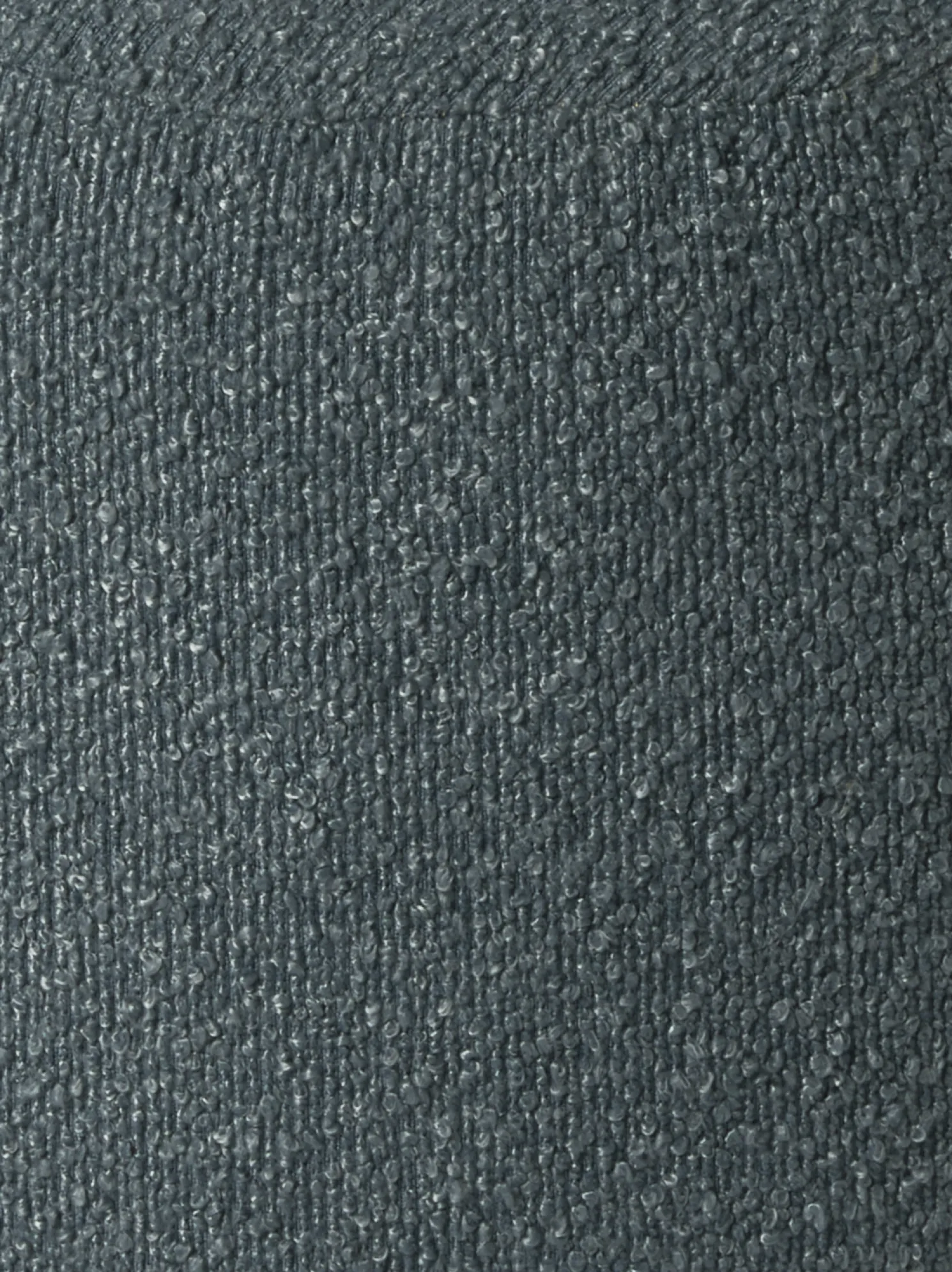 Der Hocker der Schwestern besteht aus MDF, Polyester und Polyurethan. Er hat einen schönen Bouclé-Stoff und misst Ø39 x 25 cm.