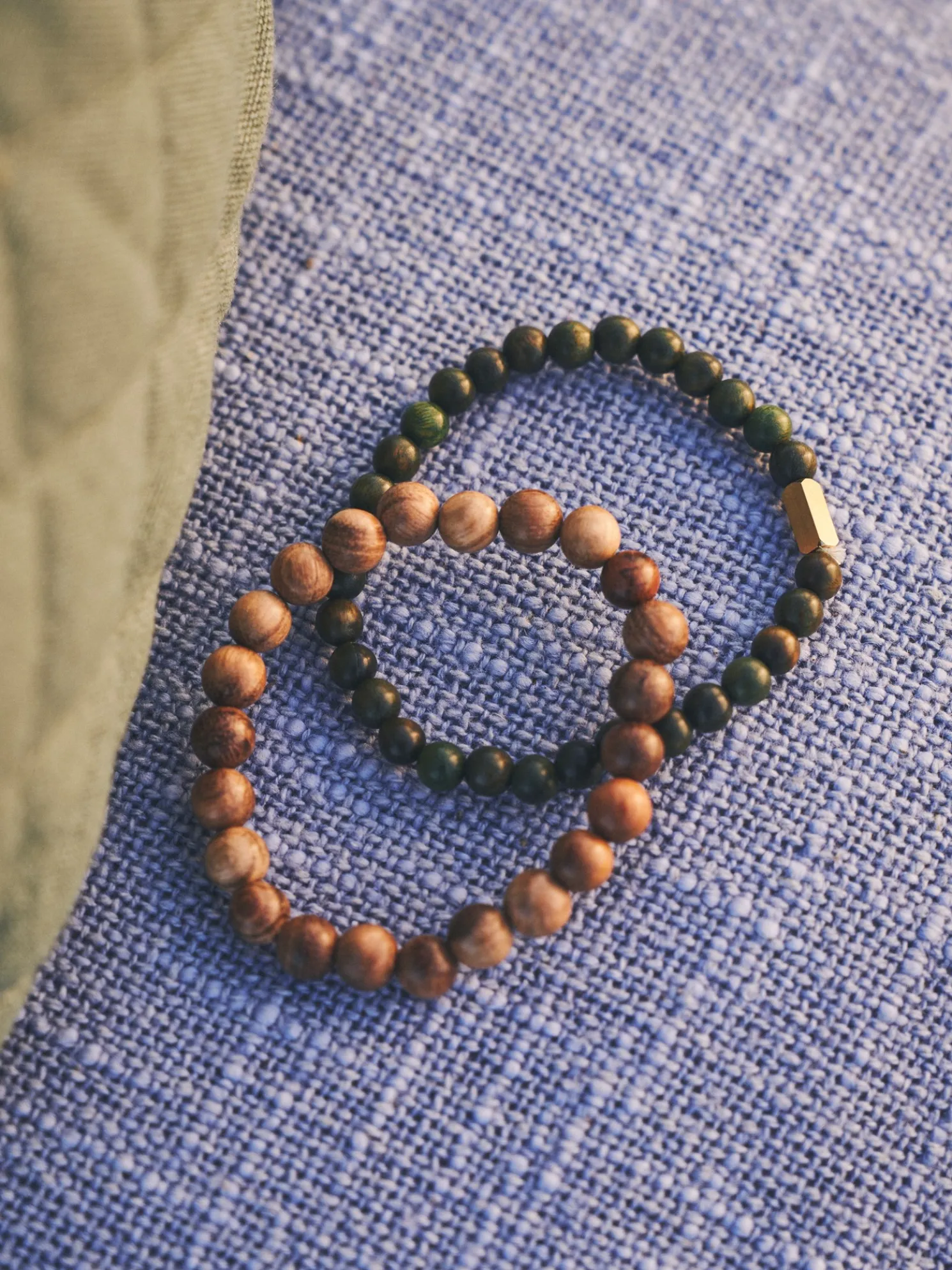 Das Armband der Schwestern besteht aus 100 % FSC®-zertifizierten Kiefernholz-Perlen.