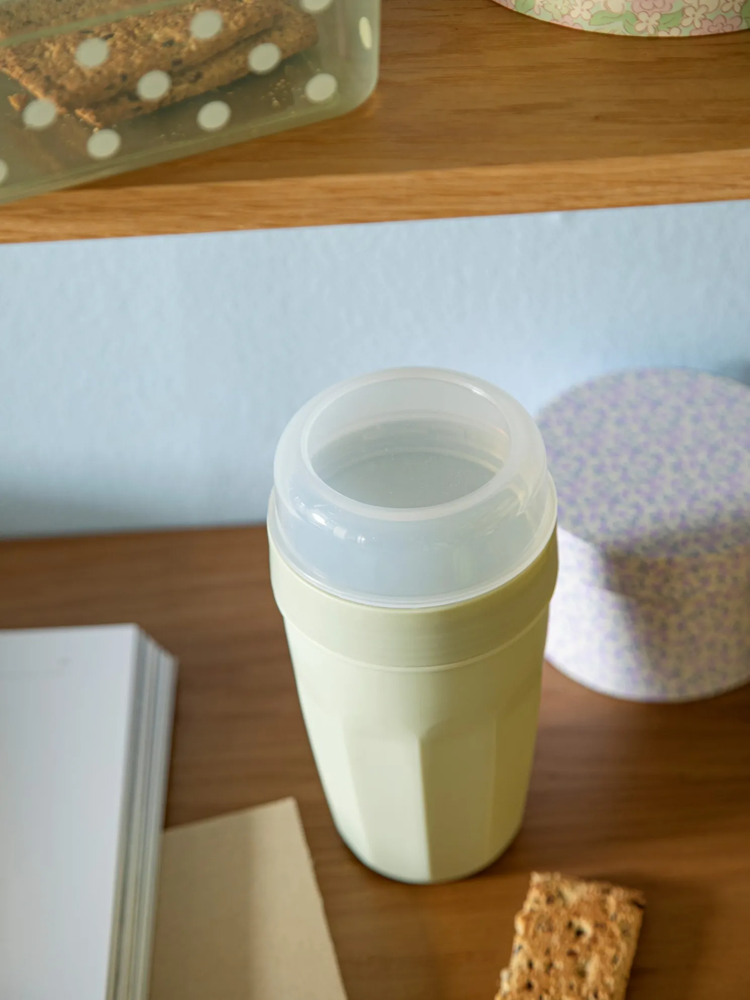 Genießen Sie unterwegs einen Salat oder einen Joghurt mit Müsli in der praktischen kleinen Joghurtbecher der Schwestern.