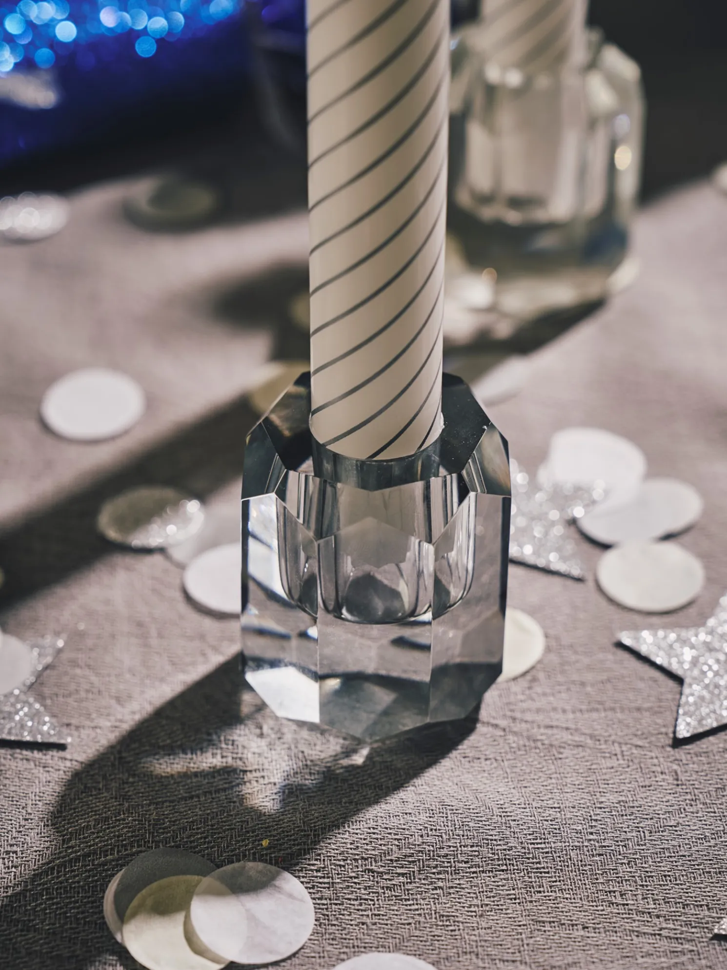 Der Kerzenständer der Schwestern ist aus Glas und misst Ø5 x 6 cm. Er passt auf die Kerzen der Schwestern mit einem Durchmesser von 2,2 cm.