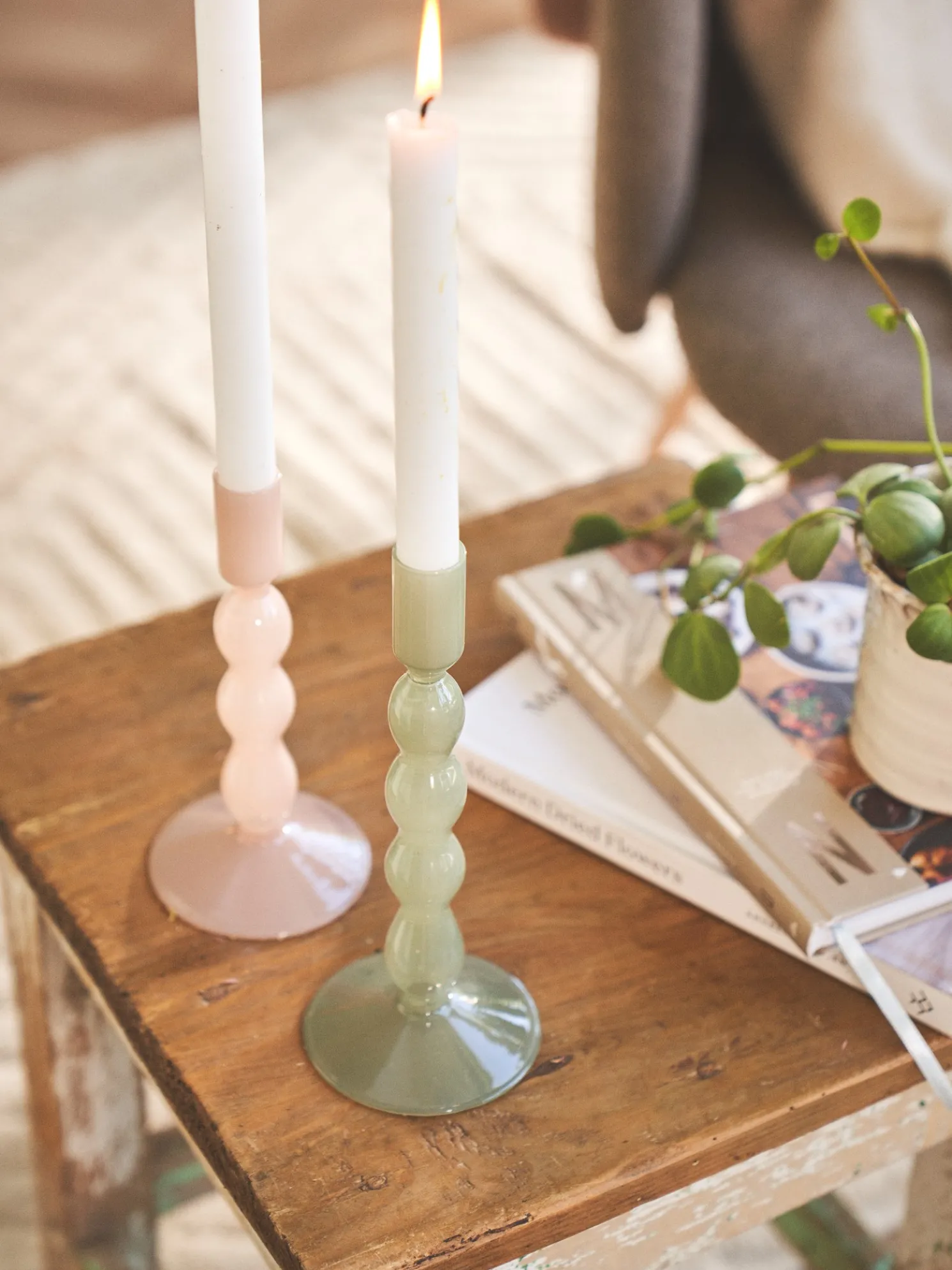 Der Kerzenhalter der Schwestern aus Glas passt perfekt zu den Kerzen mit einem Durchmesser von 2,2 cm.