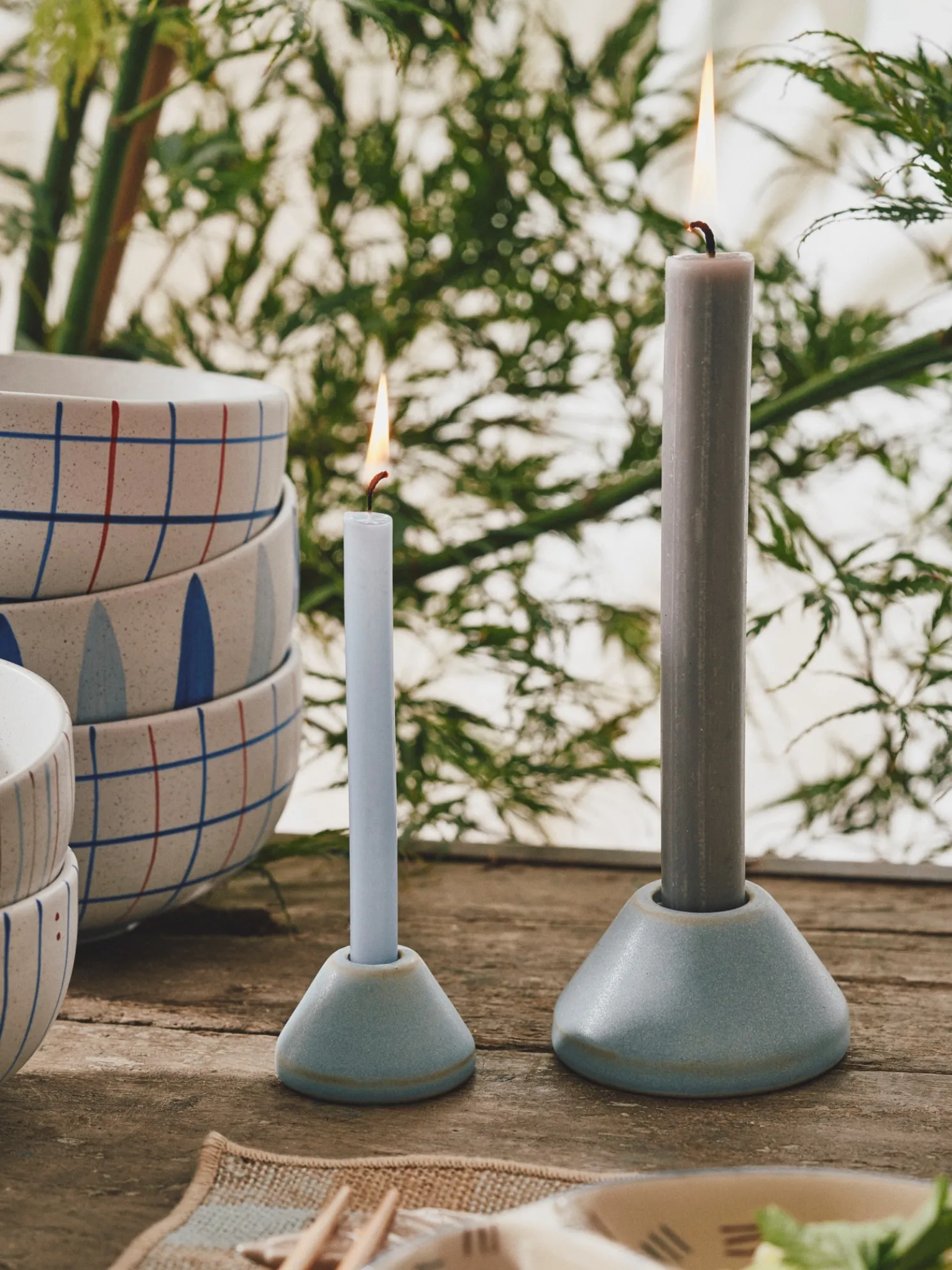 Dieser Kerzenhalter ist für Anna und Claras Stabkerzen mit Ø1,2 cm gedacht.Die Schwestern weisen darauf hin, dass da es sich um ein Steinzeugprodukt handelt, Farbe und der Ausdruck variieren können.