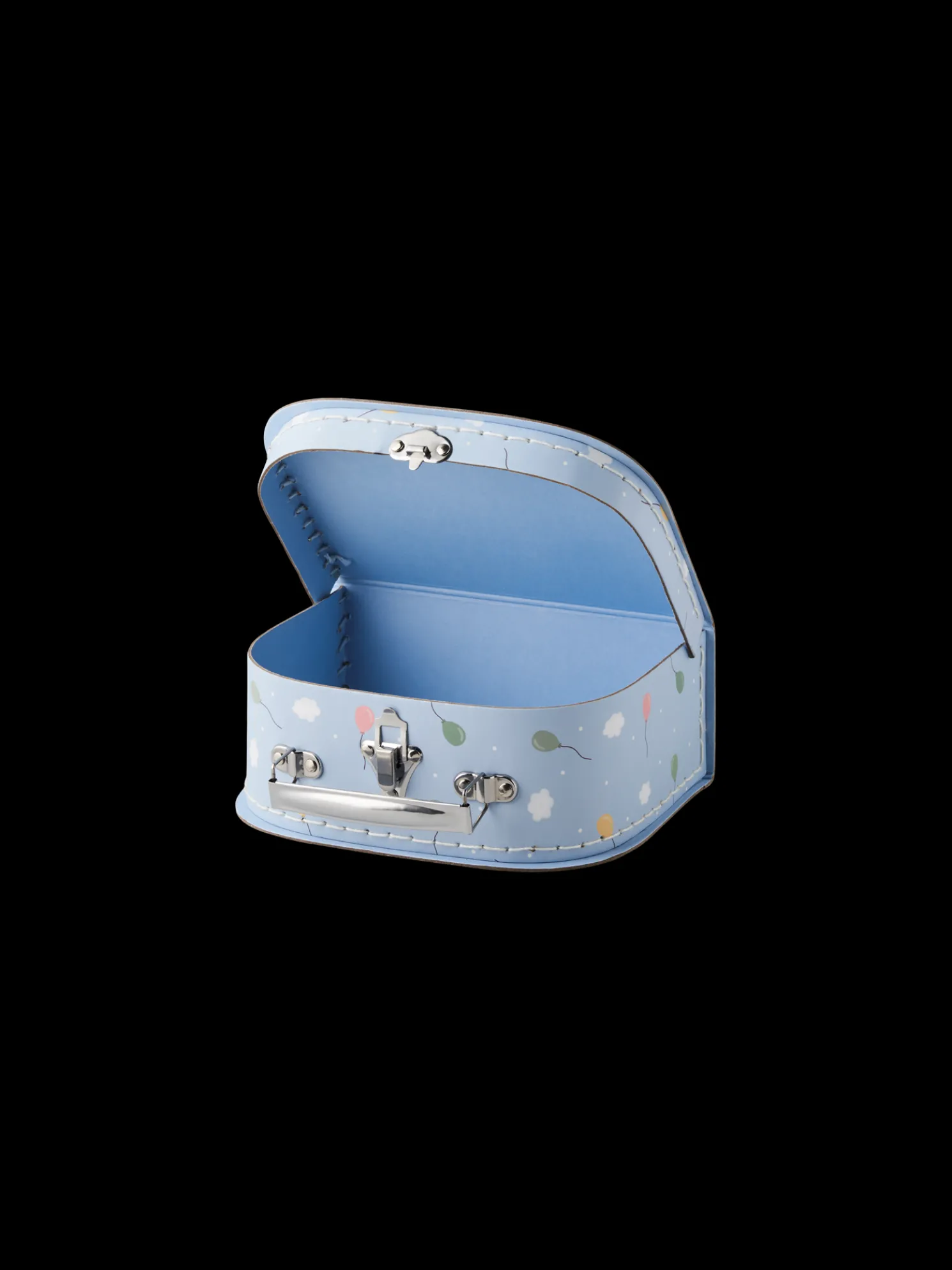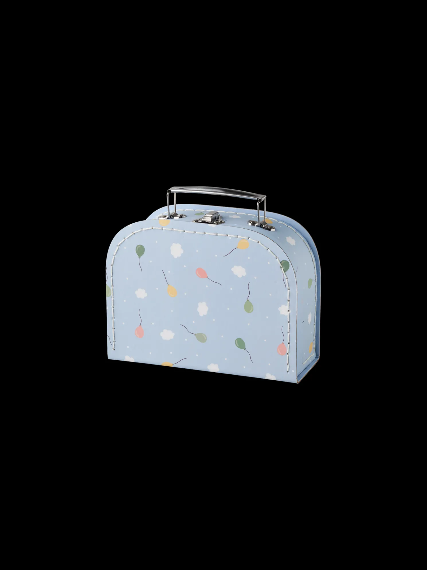Der Kinderkoffer der Schwestern ist aus Karton gefertigt und misst 20 x 15 x 8 cm.Wenn der Neffe bei den Schwestern übernachtet, bringt er immer eine Sammlung seines Lieblingsspielzeugs mit. Um den Weg zu den Schwestern zu erleichtern, hat Anna diesen niedlichen Koffer kreiert. „Er macht den Weg auch für die Spielzeuge angenehmer“, schmunzelt der Neffe.