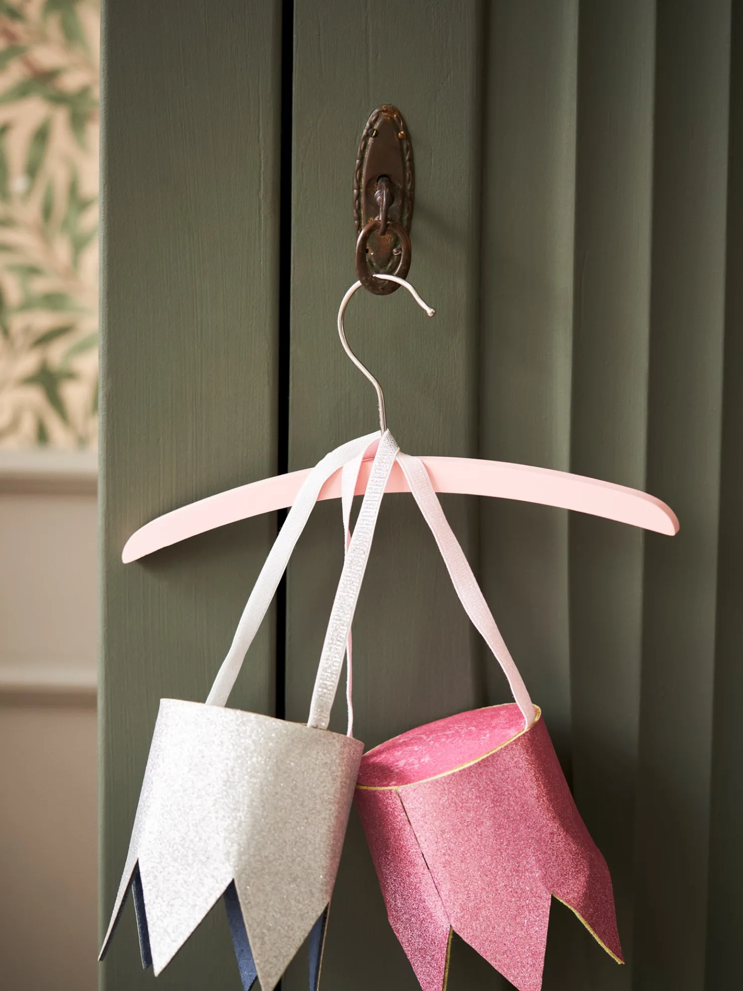 Der Kleiderbügel der Schwestern besteht aus 100 % FSC®-zertifiziertem Pappelholz und Metall. Er misst 26 cm.„In einer wunderbaren Welt können auch die kleinsten Dinge zu etwas Außergewöhnlichem werden“, sagen Anna und Clara immer.