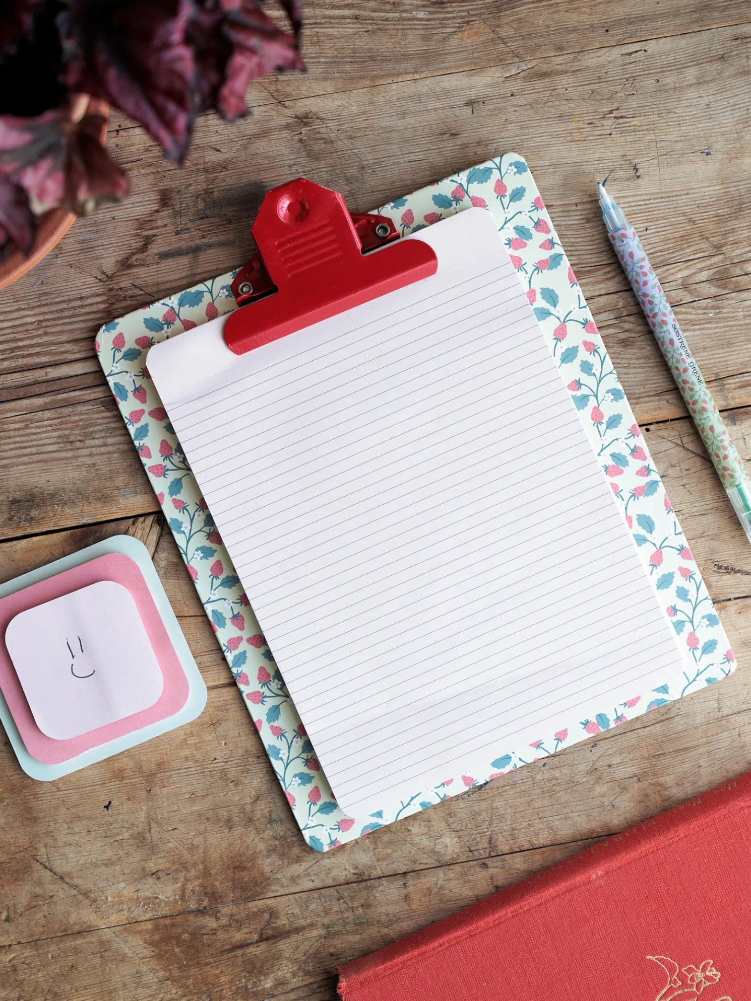 Das Klemmbrett mit Notizblock besteht aus FSC®-zertifiziertem Papier und Metall und misst 21,5 x 17,7 cm. Der Notizblock hat 80 Blatt.Statten Sie Ihre Schultasche, Arbeitstasche oder Ihr Homeoffice mit allen notwendigen Materialien für den Erfolg aus.