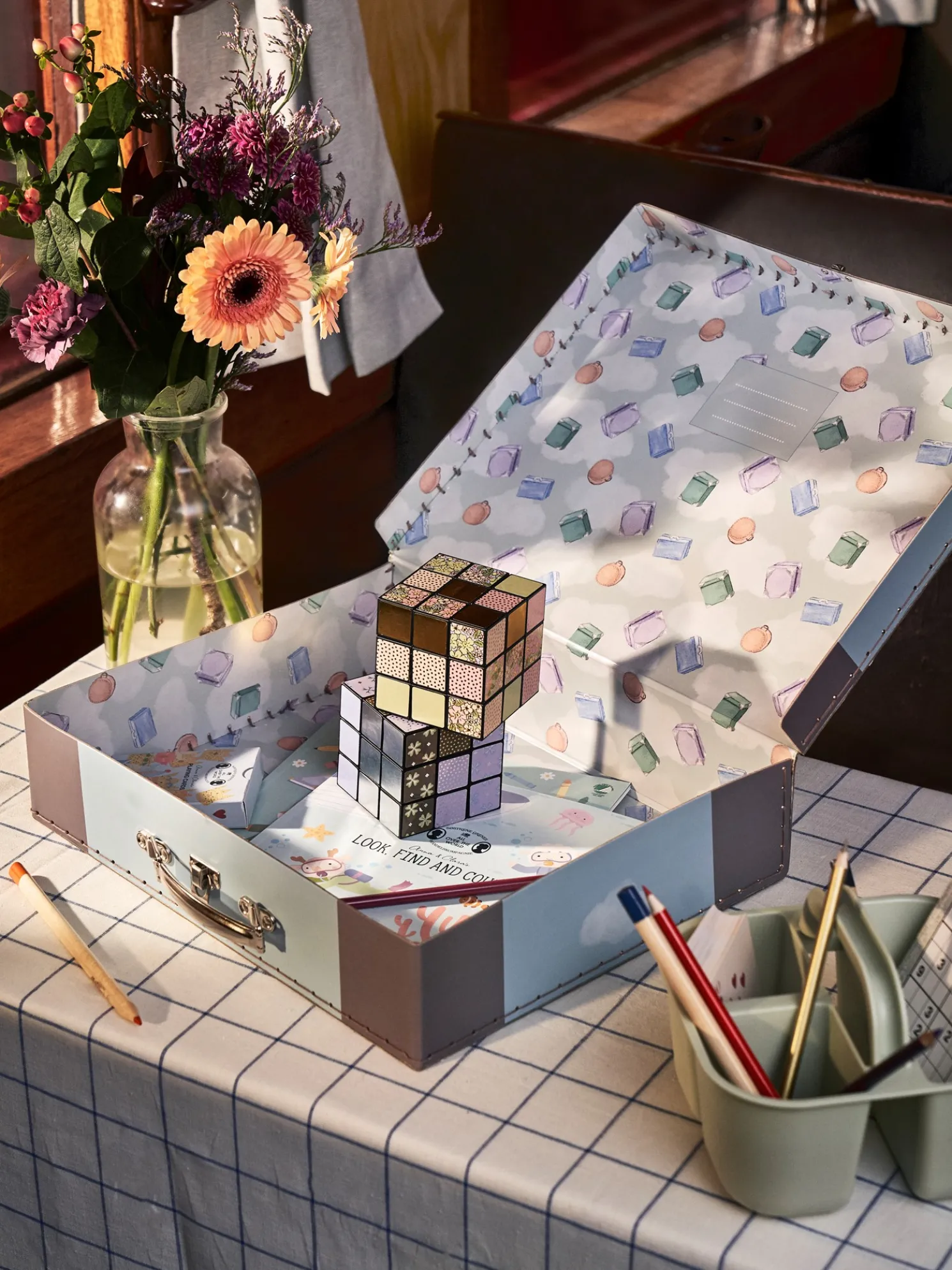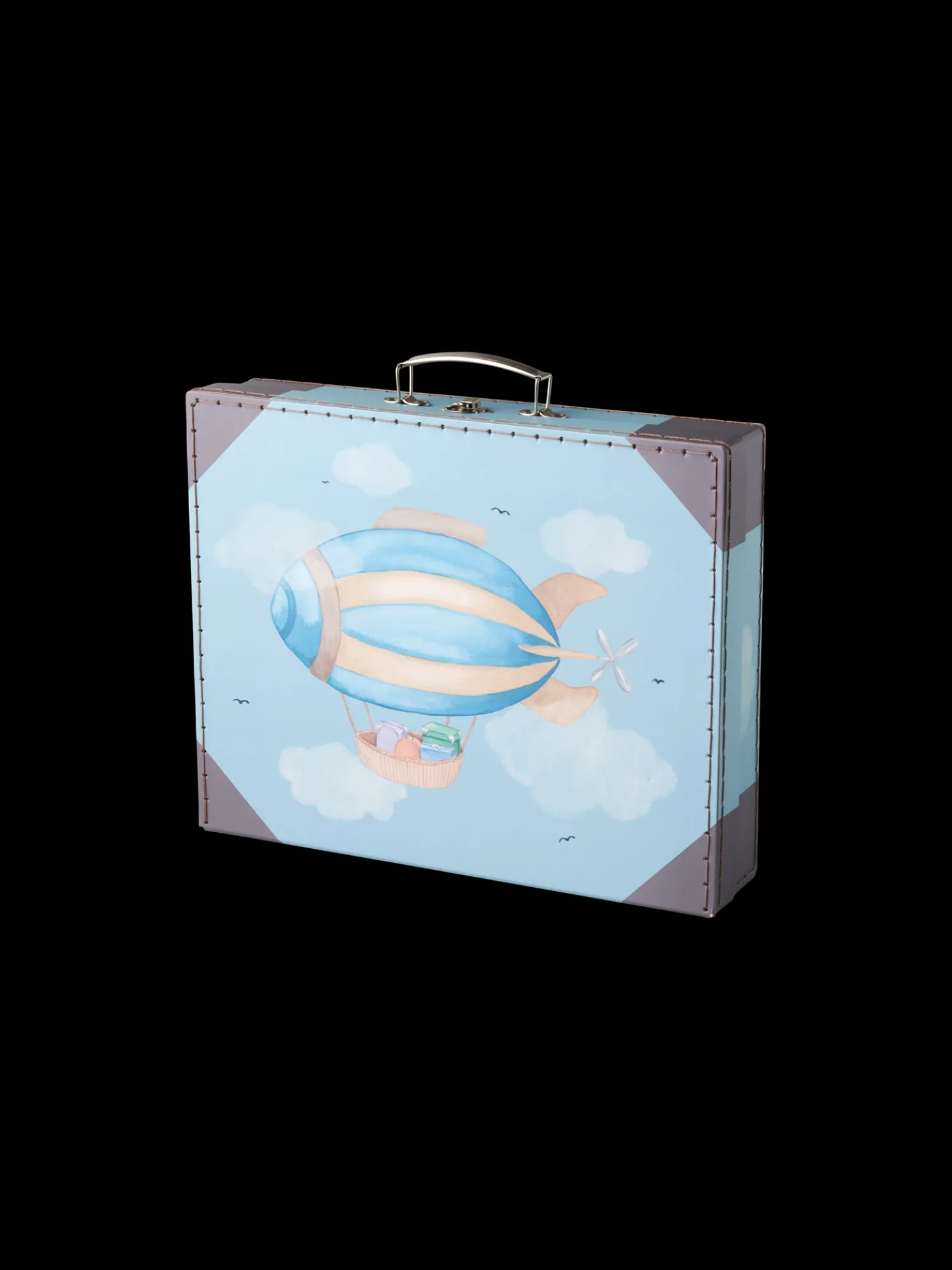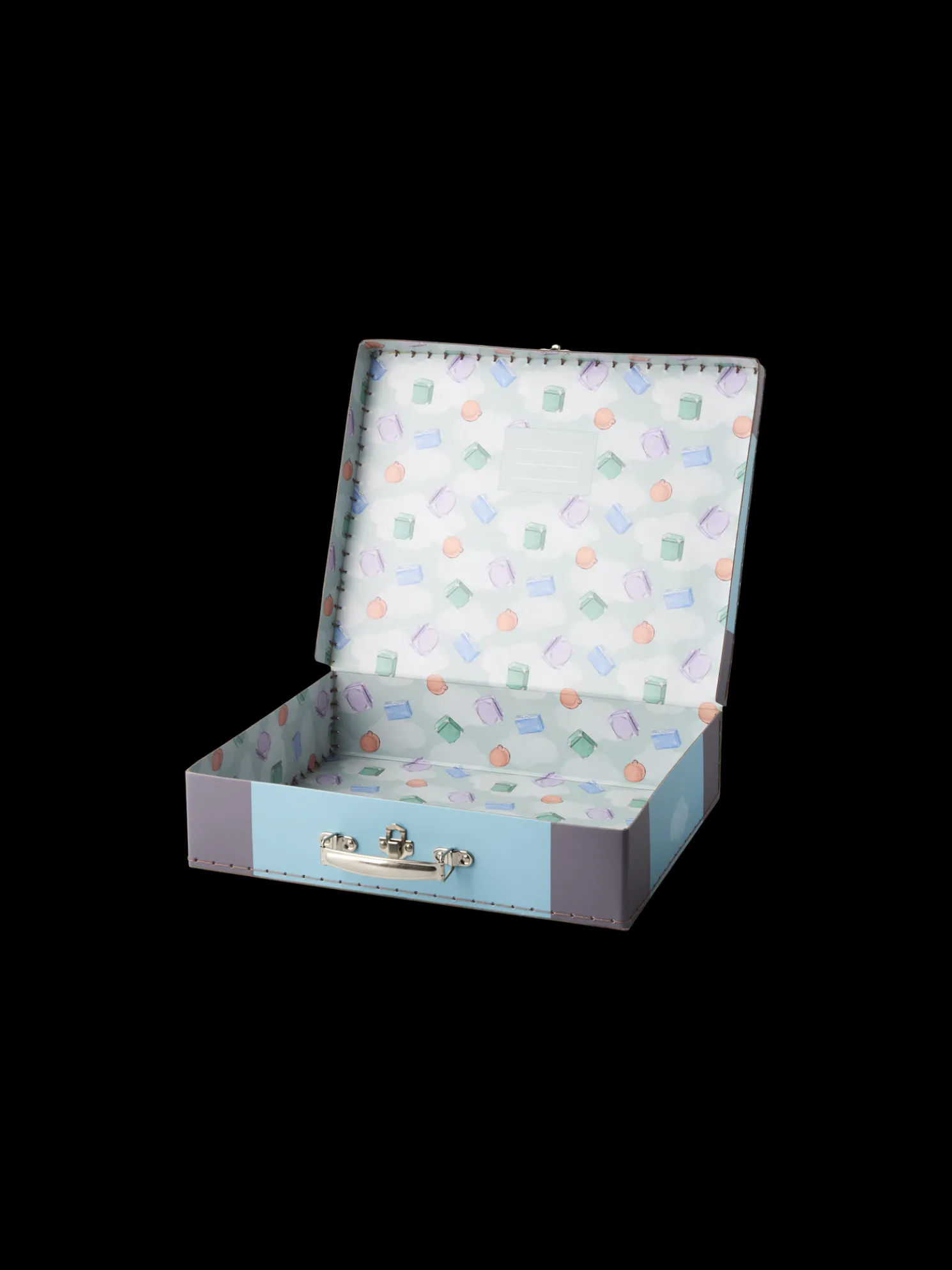 Der Kinderkoffer der Schwestern besteht aus FSC®-zertifiziertem Papier mit Metallverschluss und Griff. Auf der Innenseite des Koffers befindet sich außerdem ein kleines Namensschild.