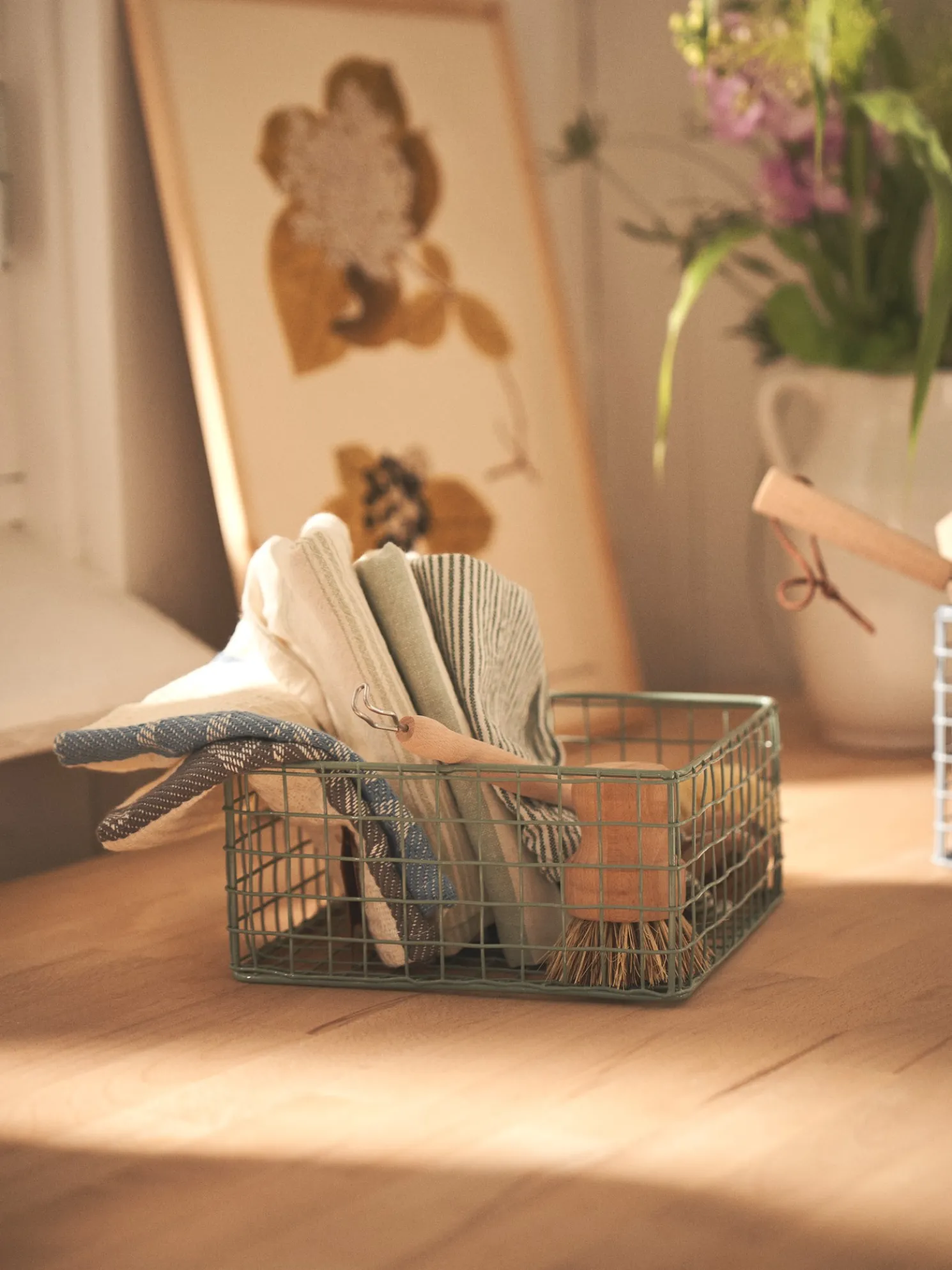Der Drahtkorb aus Metall der Schwestern ist eine schöne Aufbewahrungslösung für zu Hause.