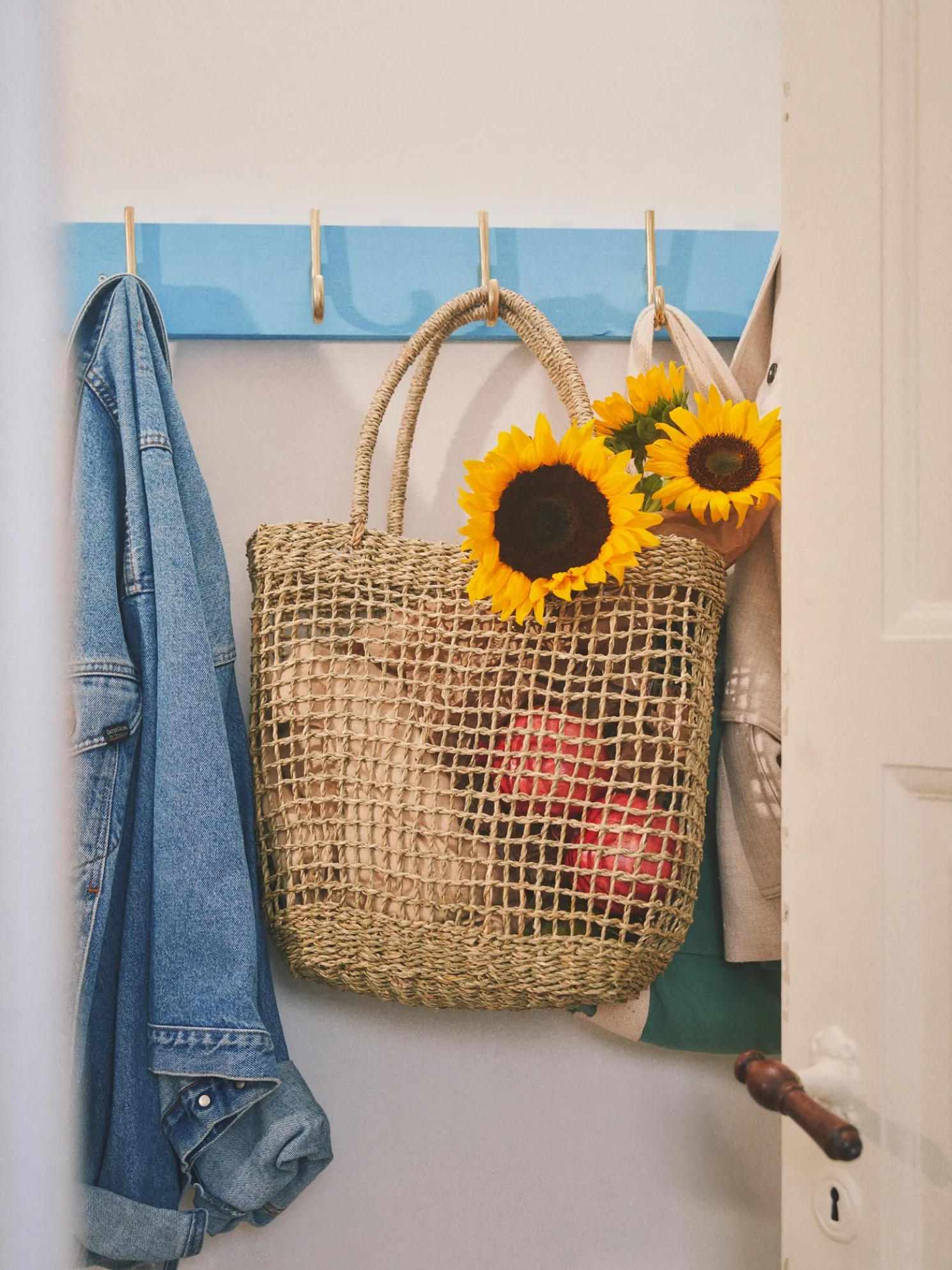Der Korb der Schwestern hat einen schönen natürlichen Look und kann verwendet werden, um das Zuhause aufgeräumt zu halten oder auf eine Reise mitzunehmen.Da es sich um ein Naturprodukt handelt, weisen die Schwestern darauf hin, dass der Ausdruck und die Größe leicht variieren können.