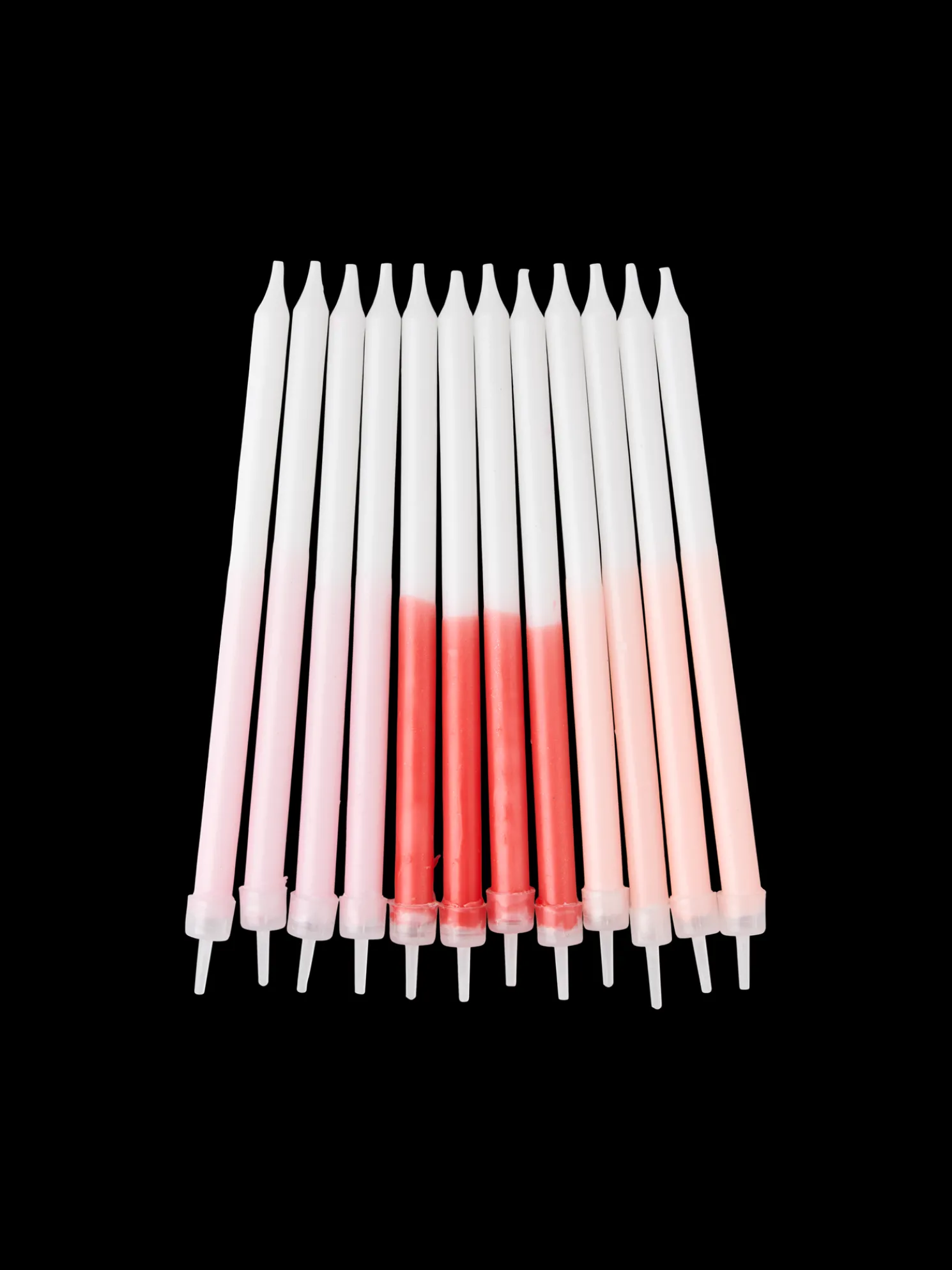 Die Kuchenkerzen der Schwestern sind in einem Set mit 12 Kerzen und 12 transparenten Haltern erhältlich.