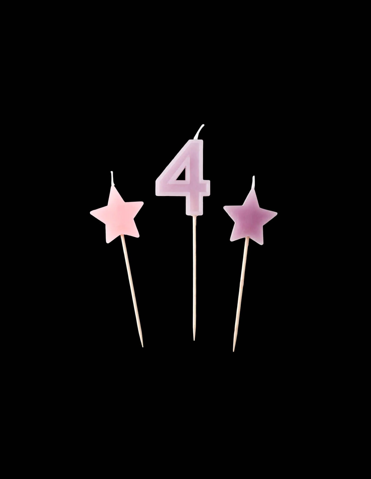 Die Kuchenkerzen der Schwestern bestehen aus Paraffinwachs, und jedes Päckchen enthält eine nummerierte Kerze sowie zwei sternförmige Kerzen. Die Zahl ‚4‘ misst 11,5 x 3 cm und die beiden Sterne messen jeweils 9 x 3 cm. Alle drei Kerzen sind an einem 7 cm langen Stiel befestigt. „Die Schönheit liegt im Detail“, wie Anna und Clara zu sagen pflegen.